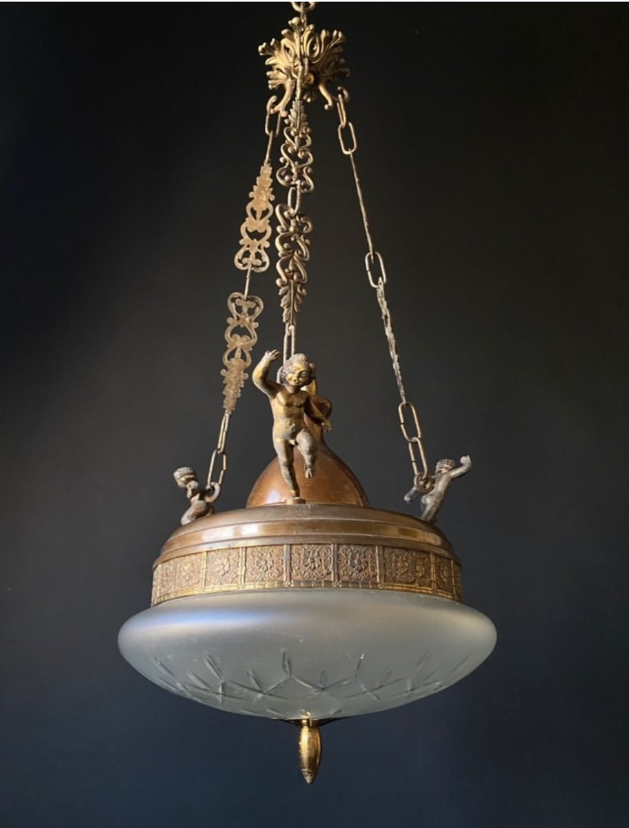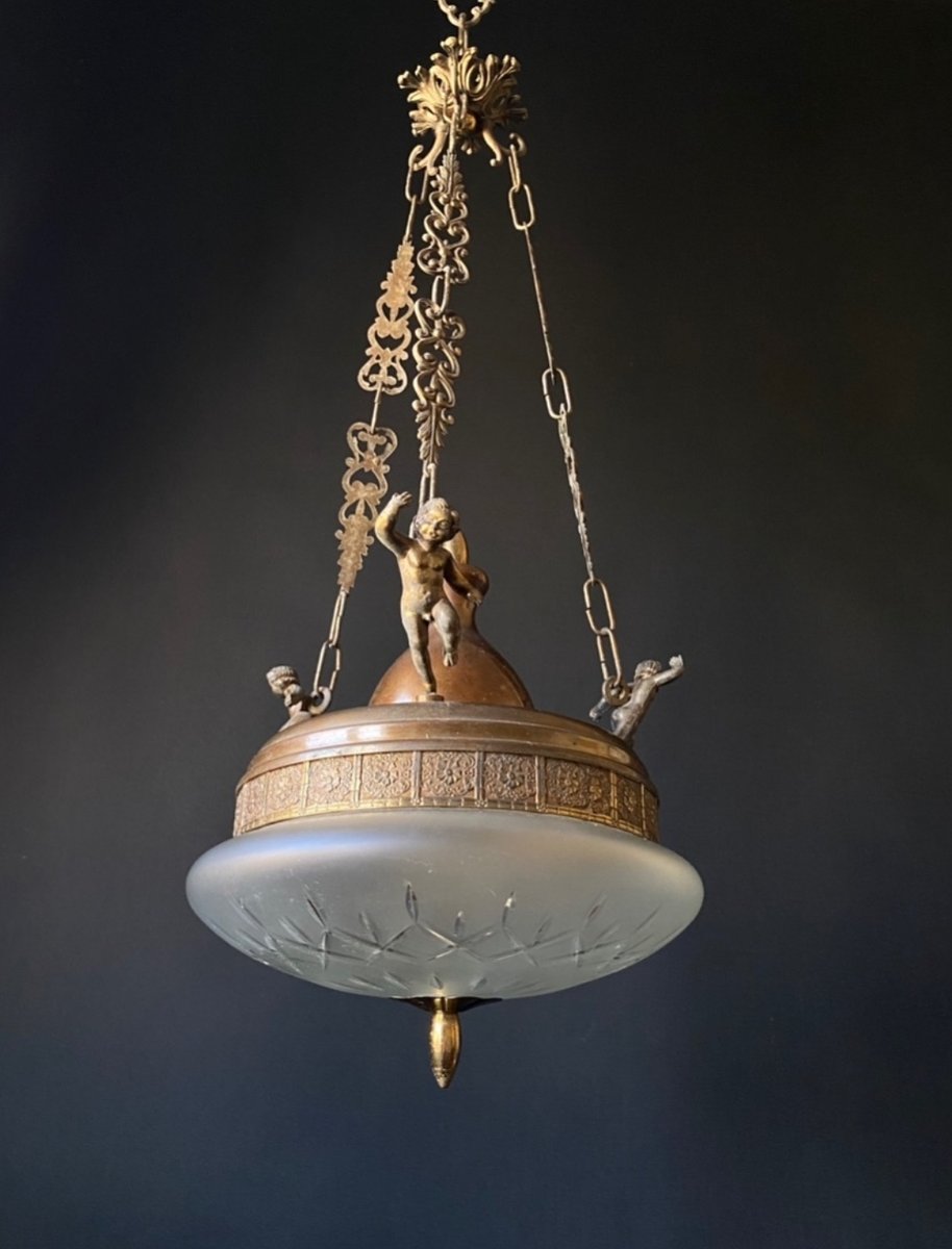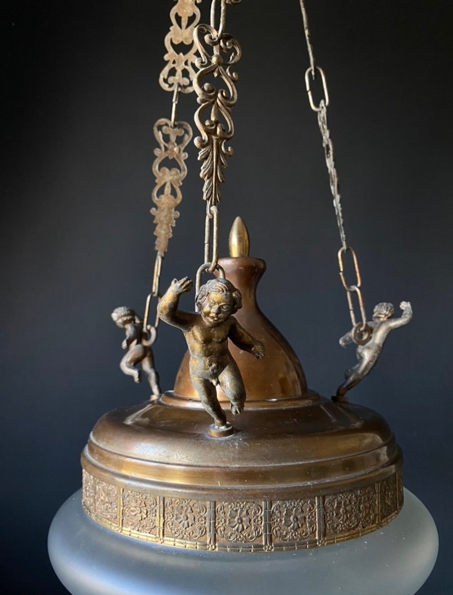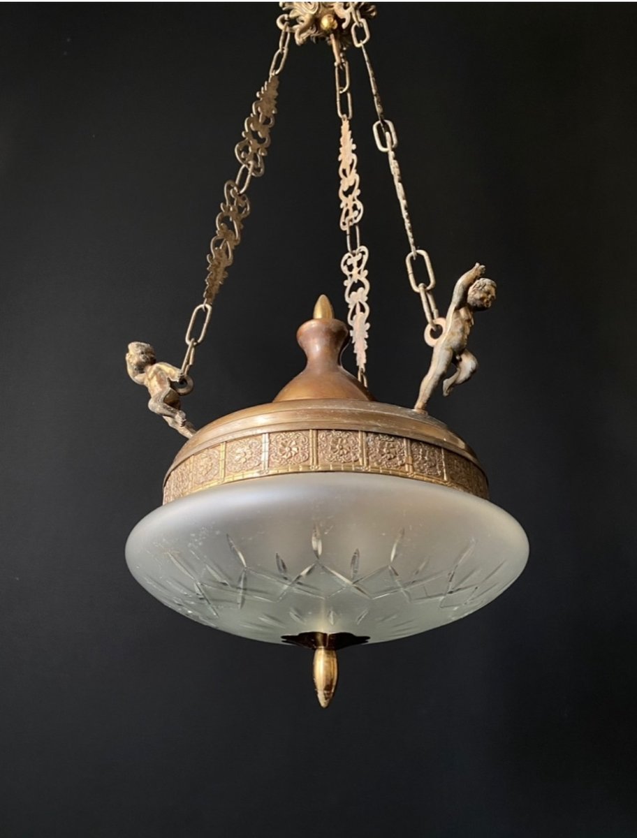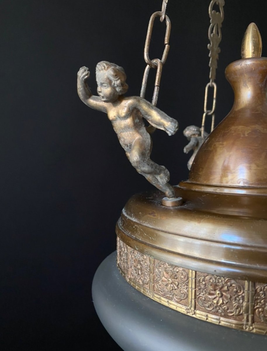 Vintage Italian Brass and Glass Pendant Light, 1960s