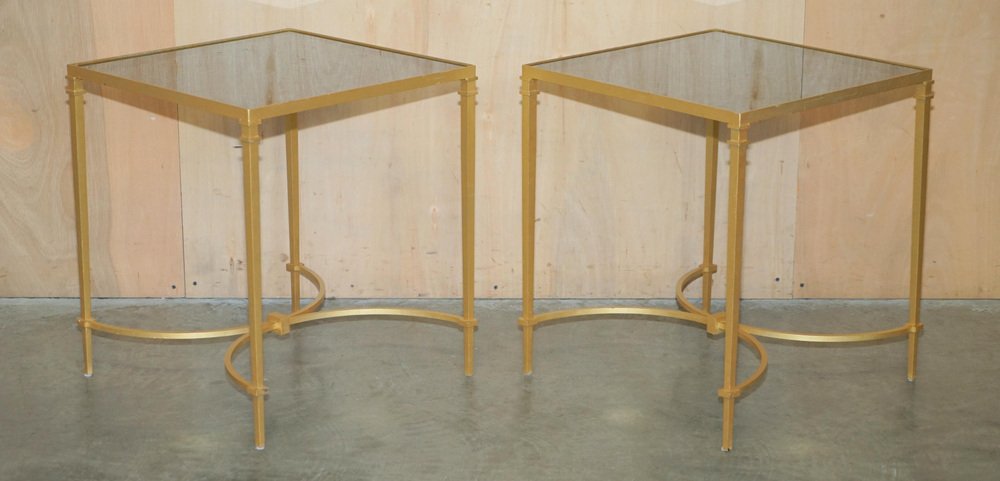 Vintage Italian Marble Side Tables with Ornately Casts Bases, 1970s, Set of 2