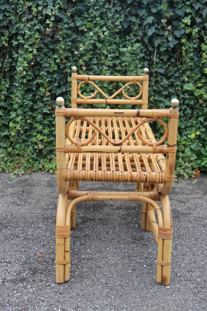 Vintage Italian Rattan Bench, 1960