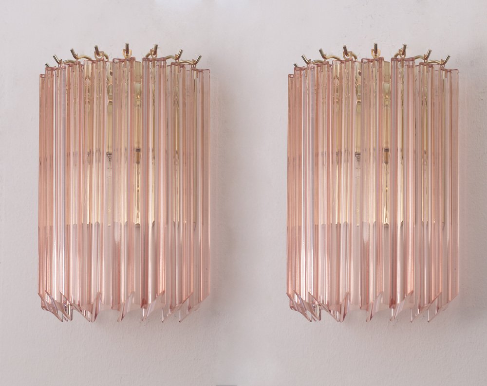 Vintage Italian Wall Lamps with Murano Glass Pink, 1990s, Set of 2
