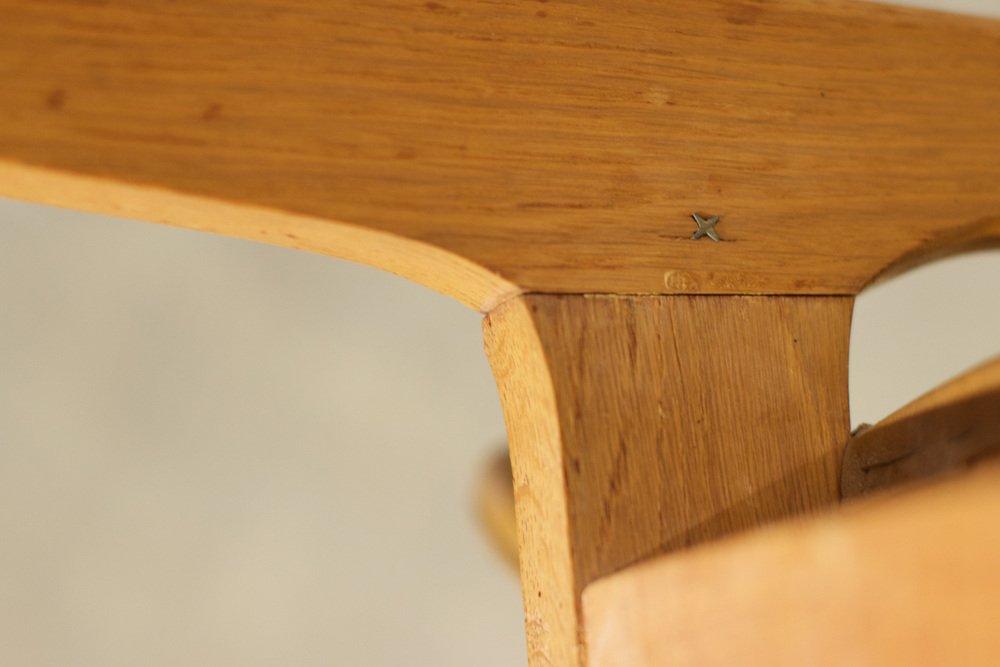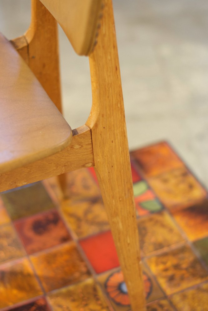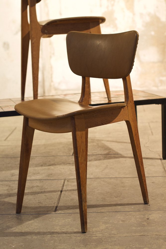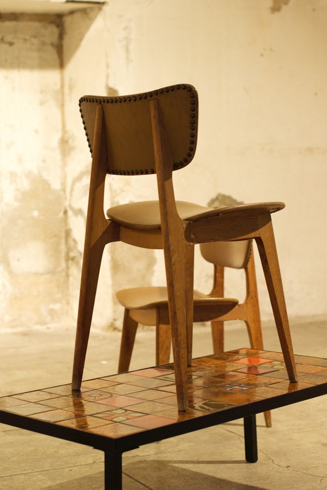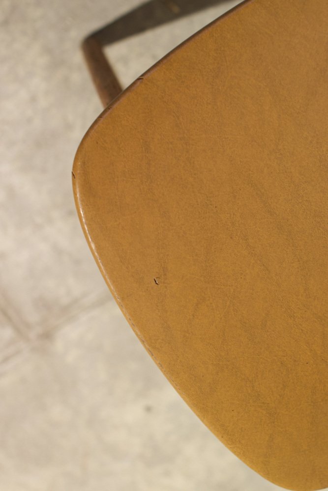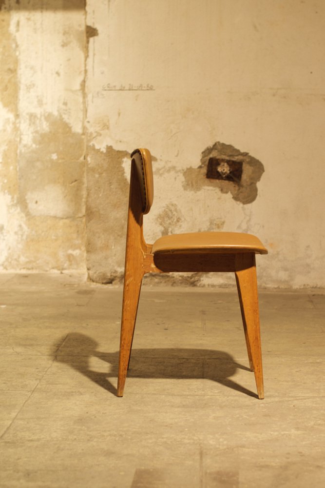 Vintage Leather and Wood Model 6157 Dining Chairs by Roger Landault, 1950s, Set of 3