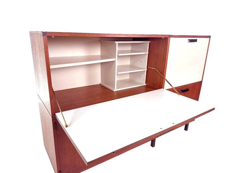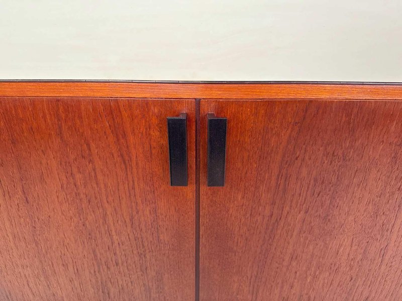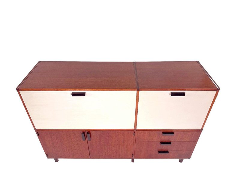 In 1848, Cees Braakman (1917-1995), D. L.’s son, took the helm as designer and director and furthered the company’s modernist aims, advocating for low-cost, modular designs inspired by the likes of Charles & Ray Eames and Alvar Aalto—the latter of which created the first series of Pastoe geometric cabinets at the end of the 1940s. During the 1950s, the company focused on developing flexible cabinet systems that could be assembled by the consumer, which led to the highly customizable, highly successful Made-to-Measure storage system (1955). In 1957, Made-to-Measure furniture was awarded a silver medal at the 11th Trienniale in Milan and crowned with the Le Signe d’Or in Belgium.