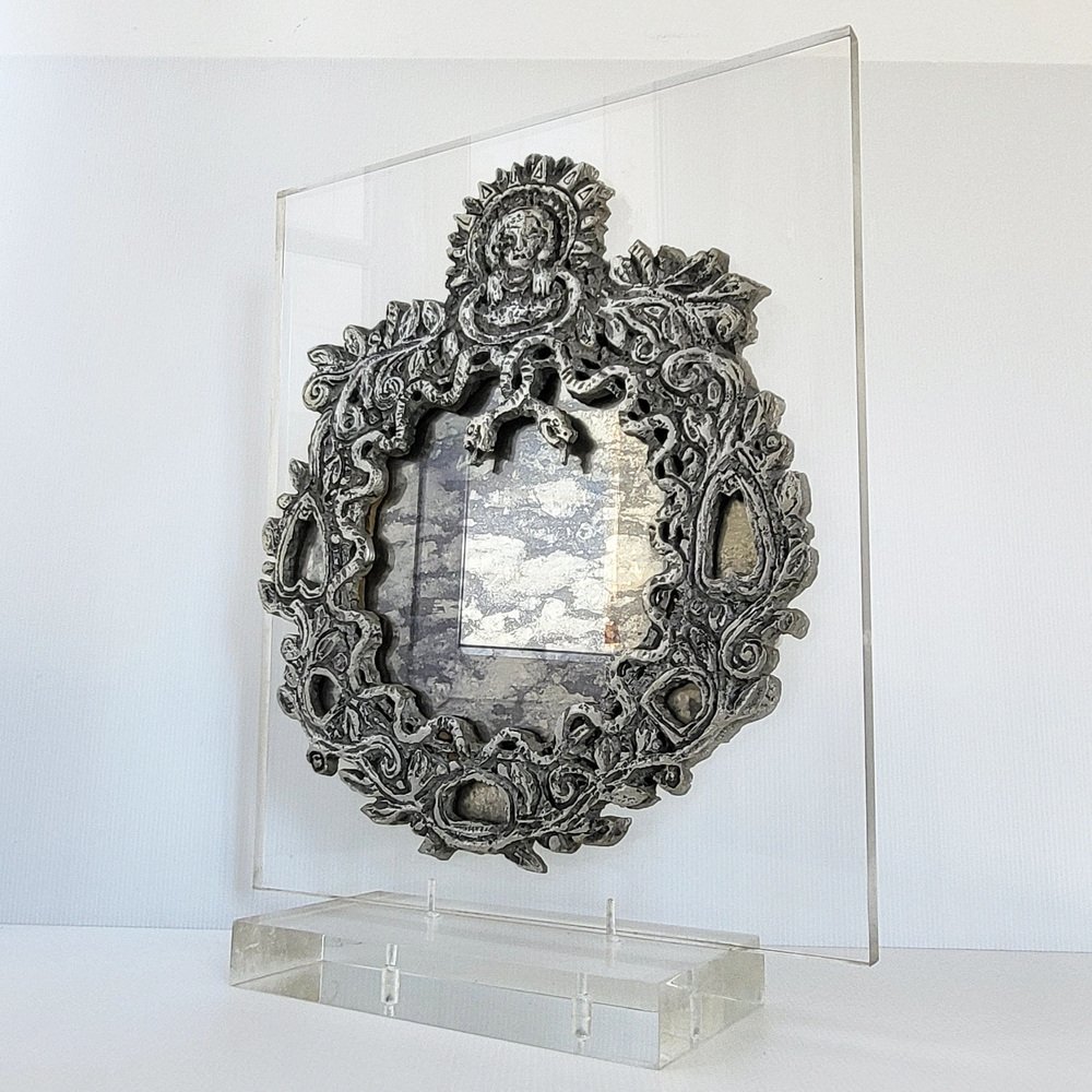 Vintage Mirror withAcrylic Glass Frame and Base, 1970s