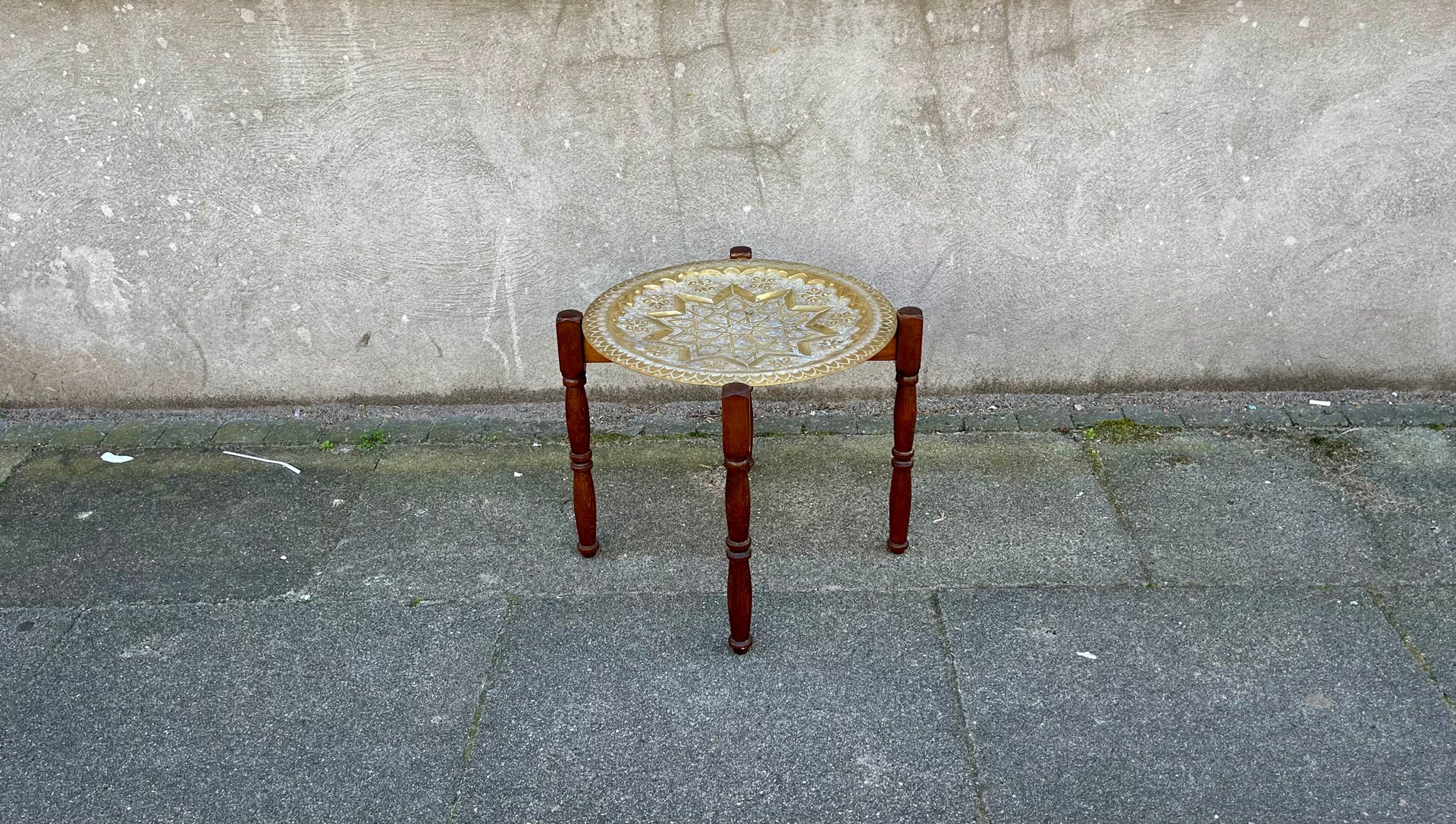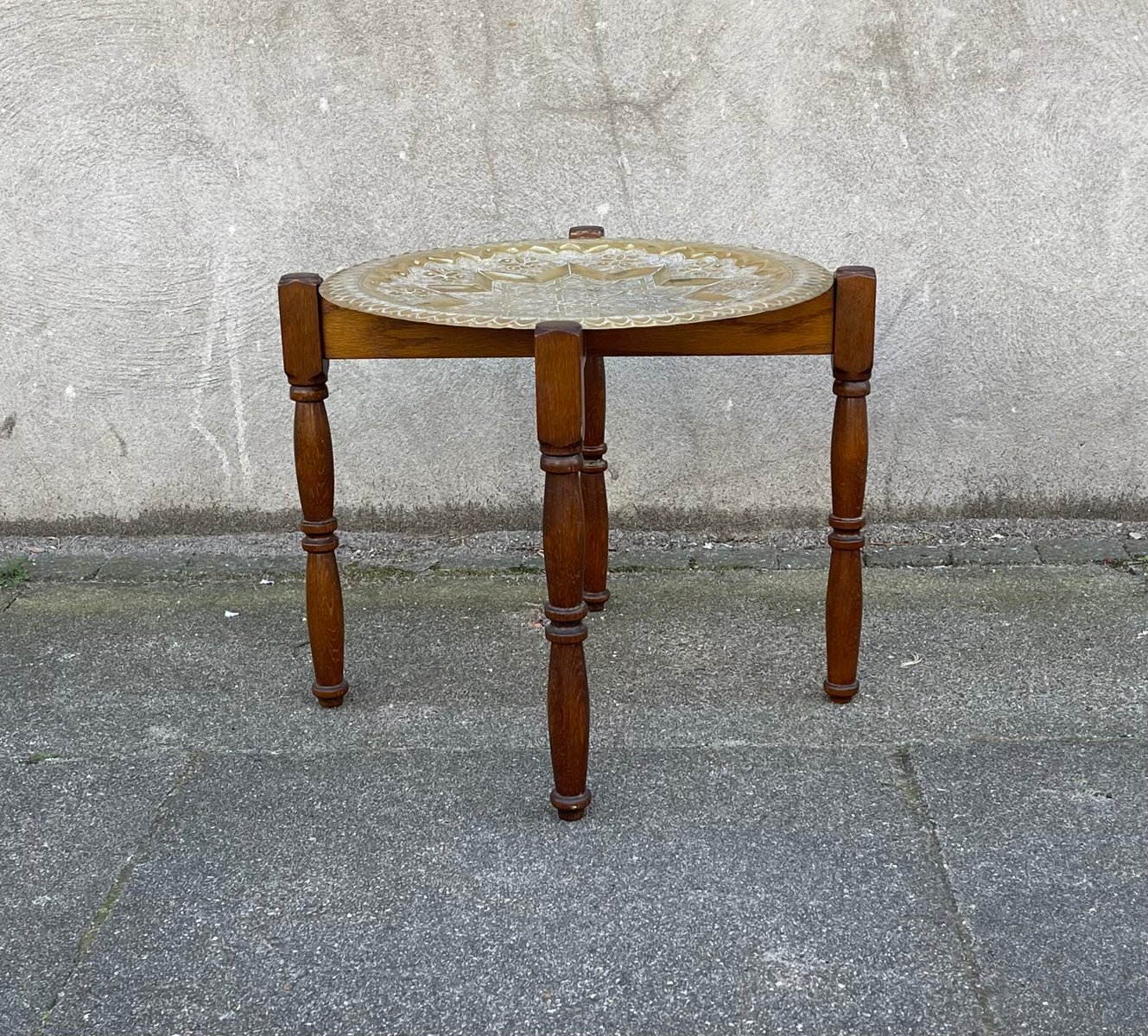 Vintage Moroccan Tea Tobacco Engraved Brass Tray Top Table, 1970s