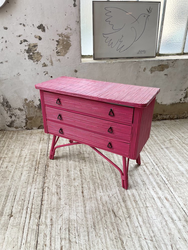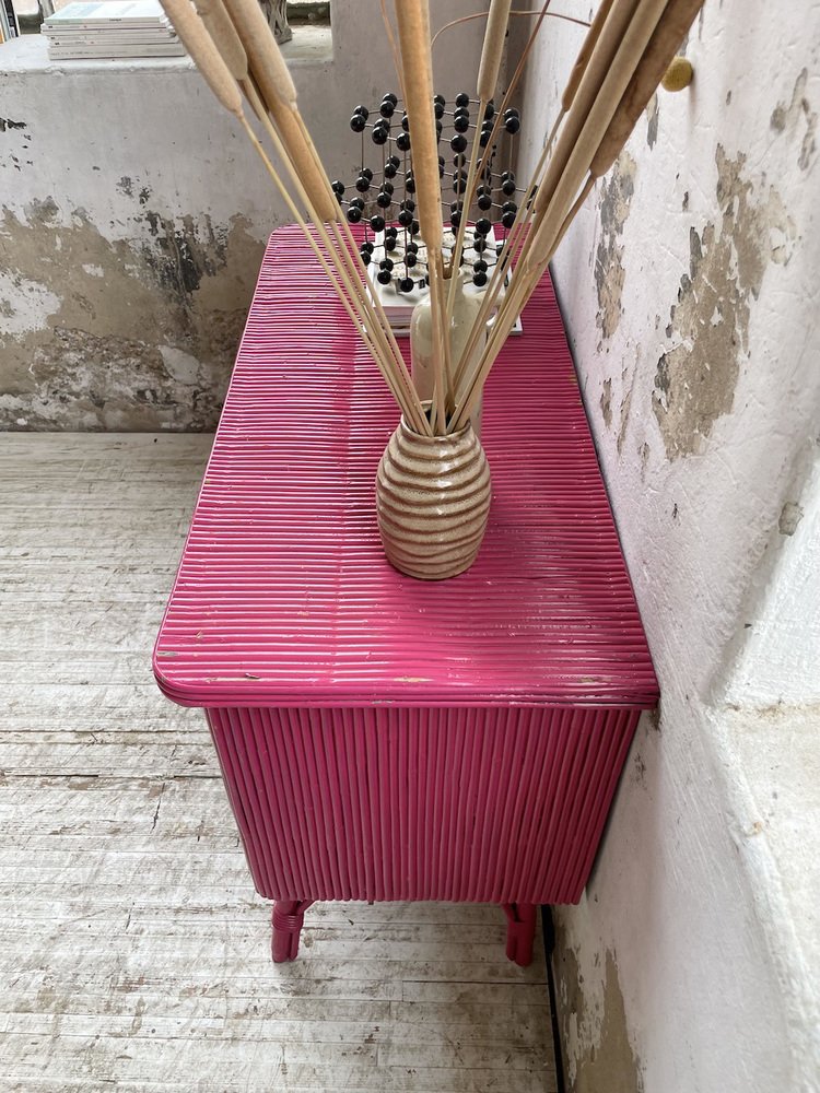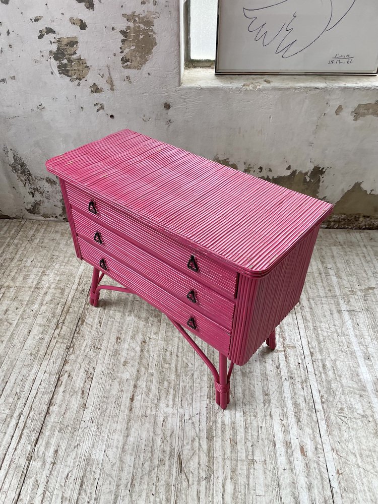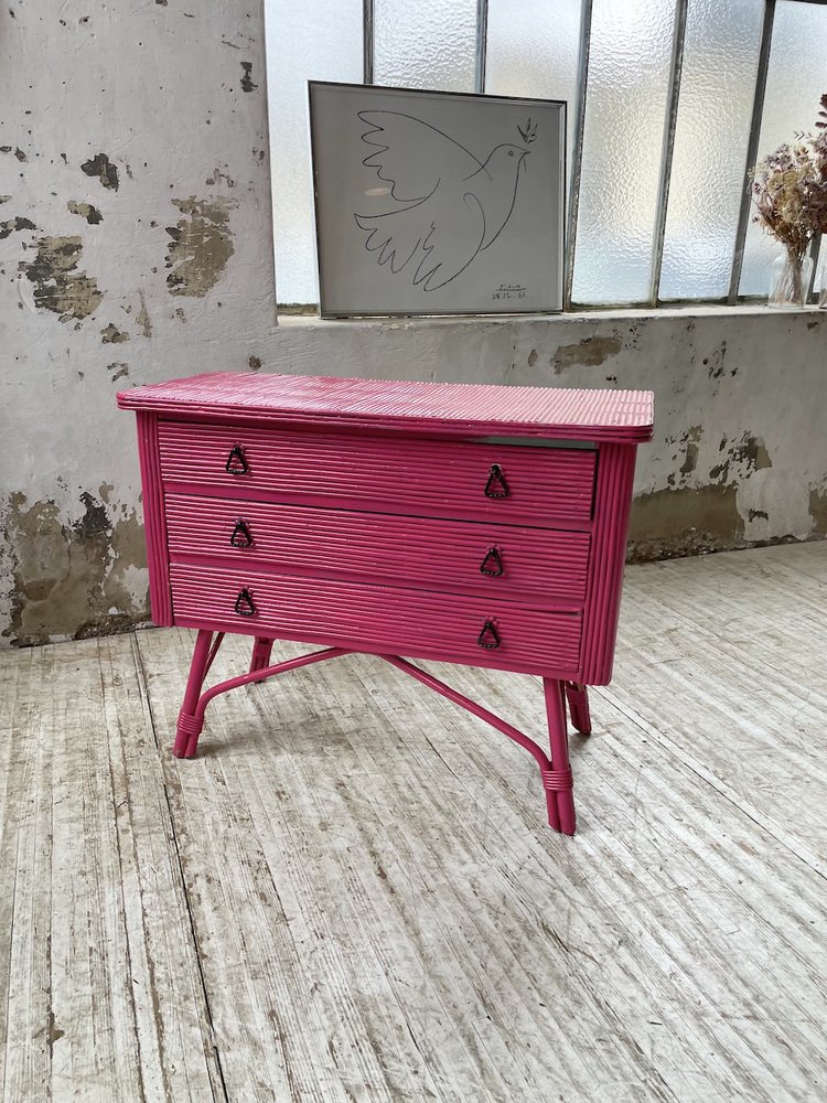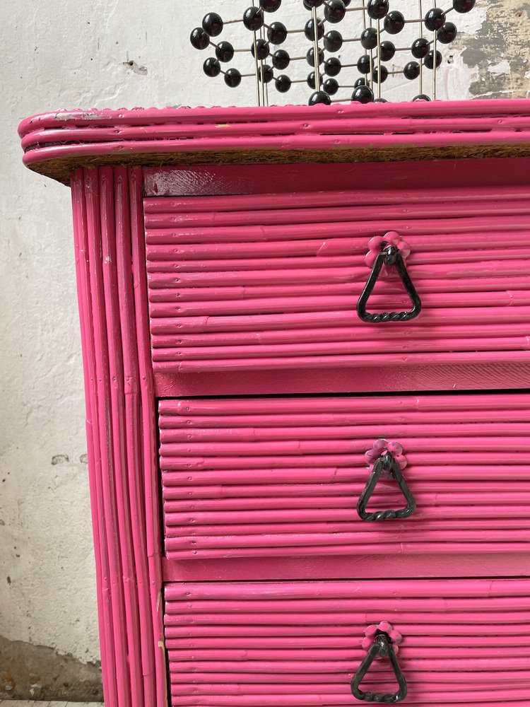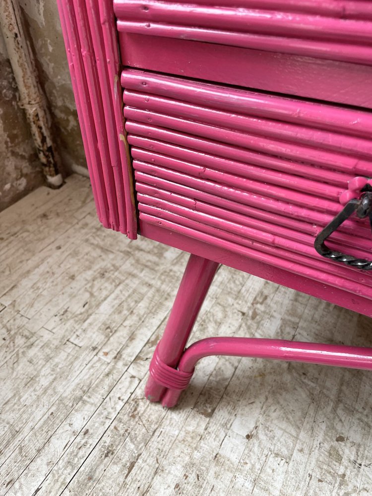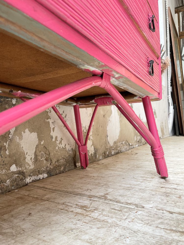 Vintage Pink Rattan Chest of Drawers, 1950s