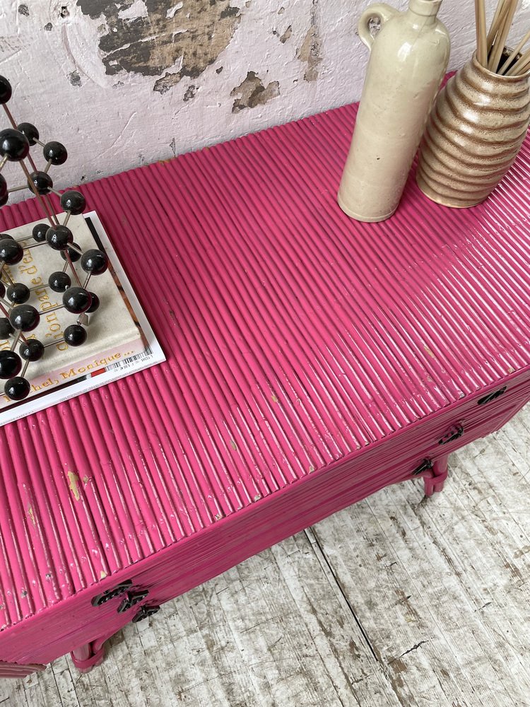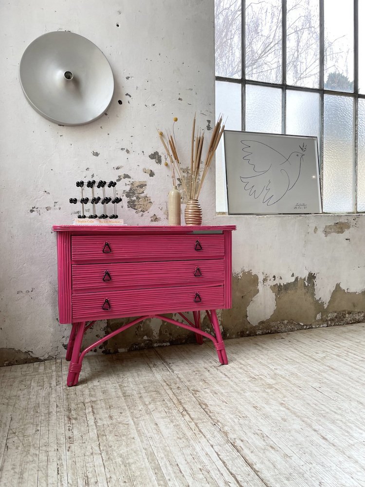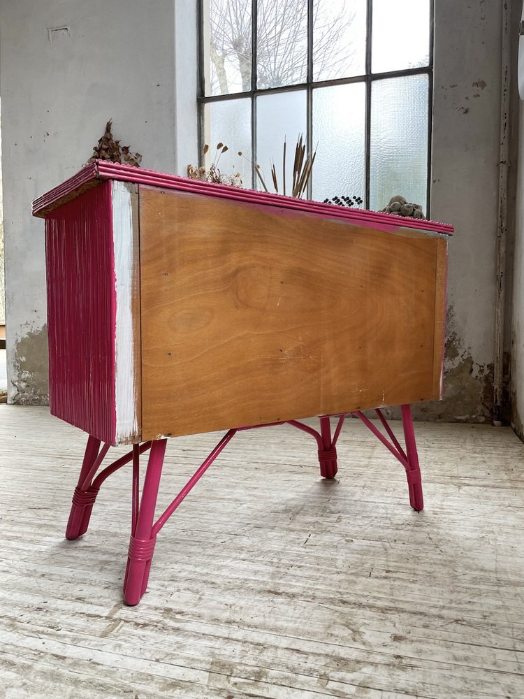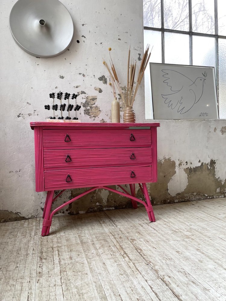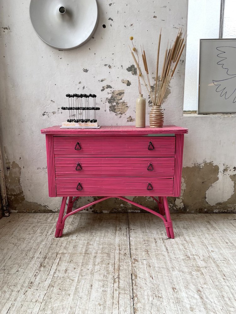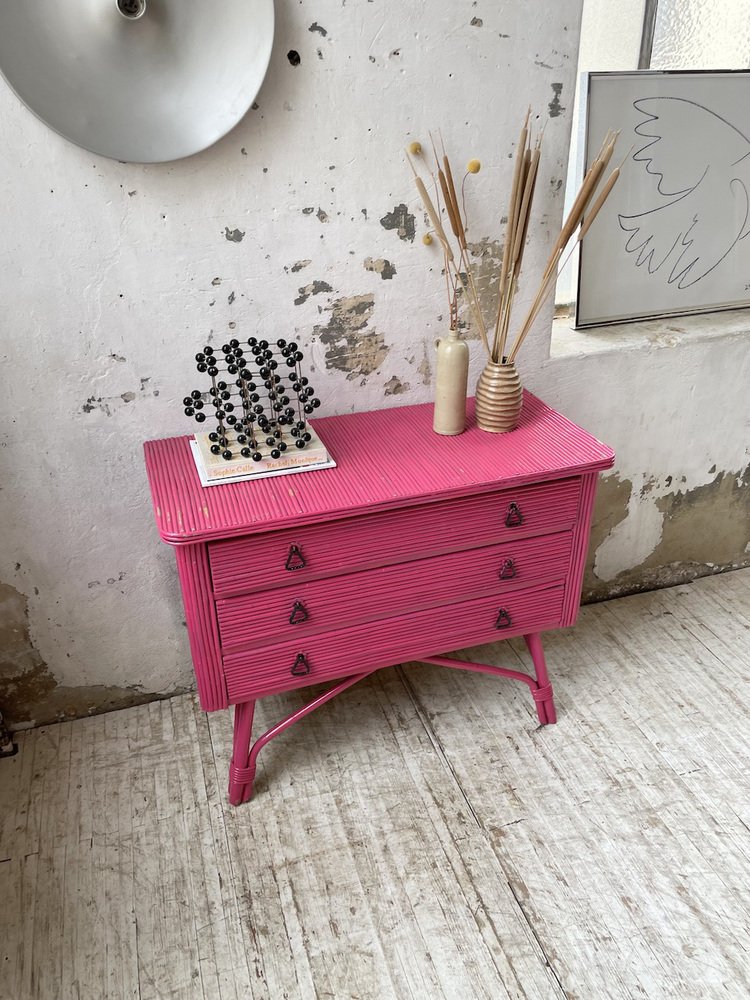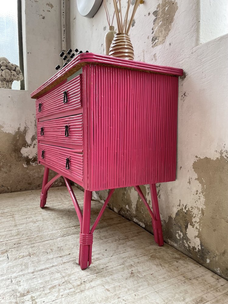 Vintage Pink Rattan Chest of Drawers, 1950s