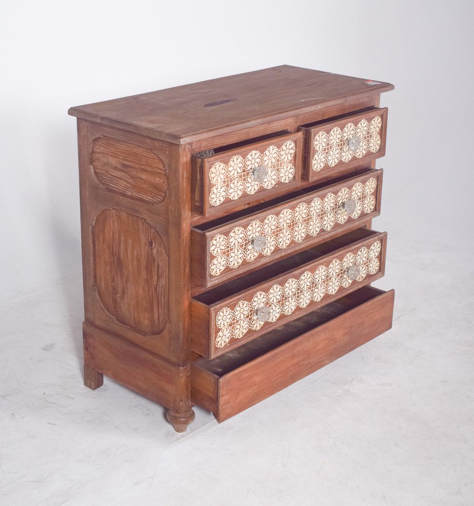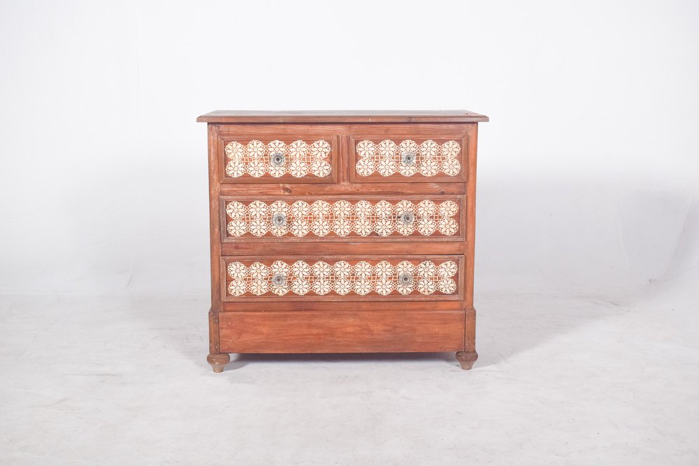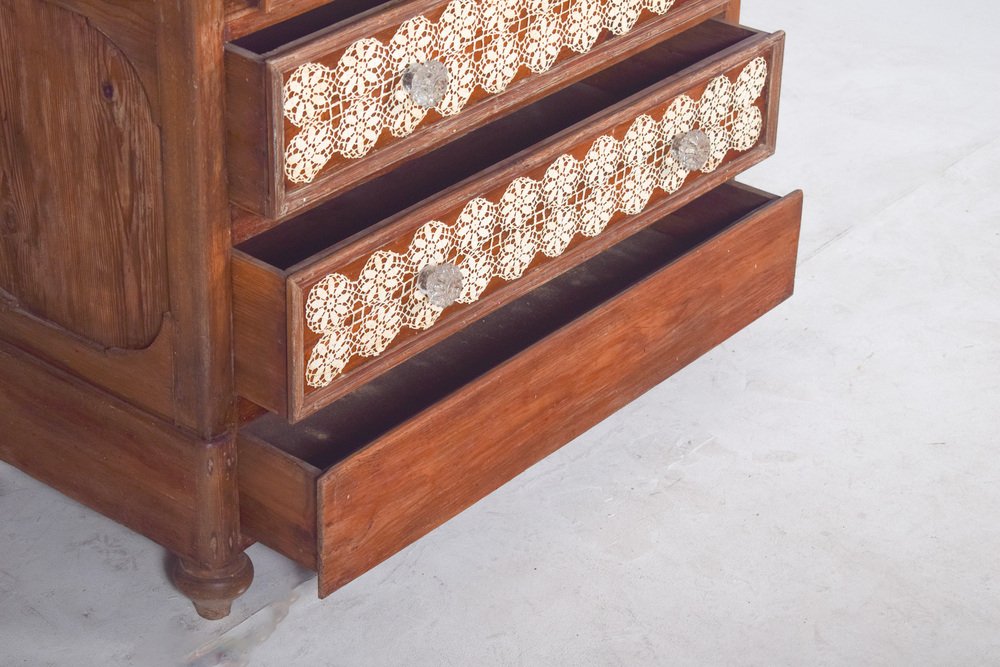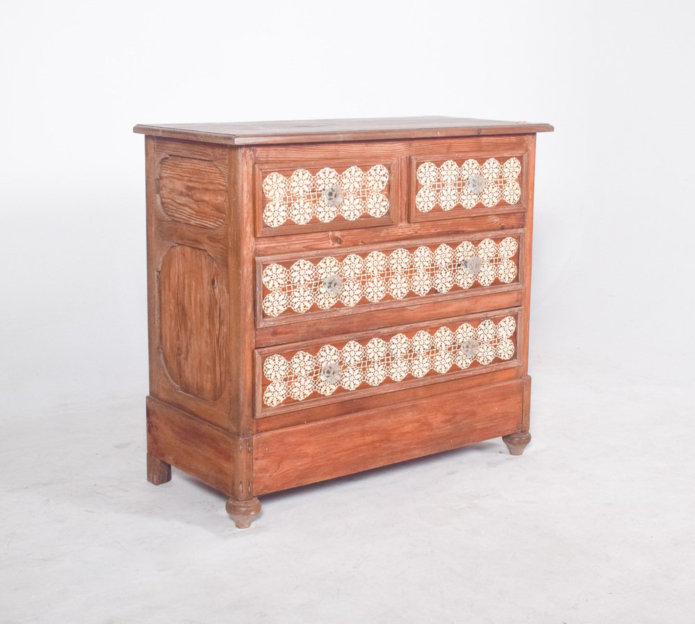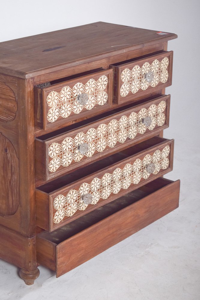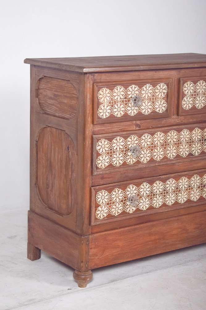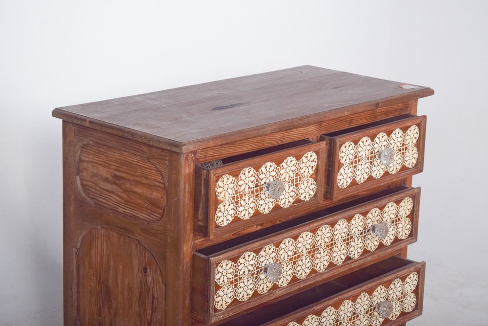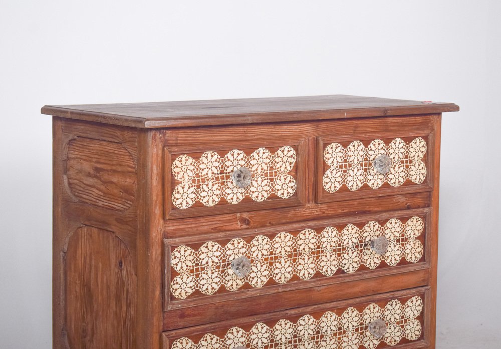 Vintage Portuguese Chest of Drawers with Crochet, 1920s