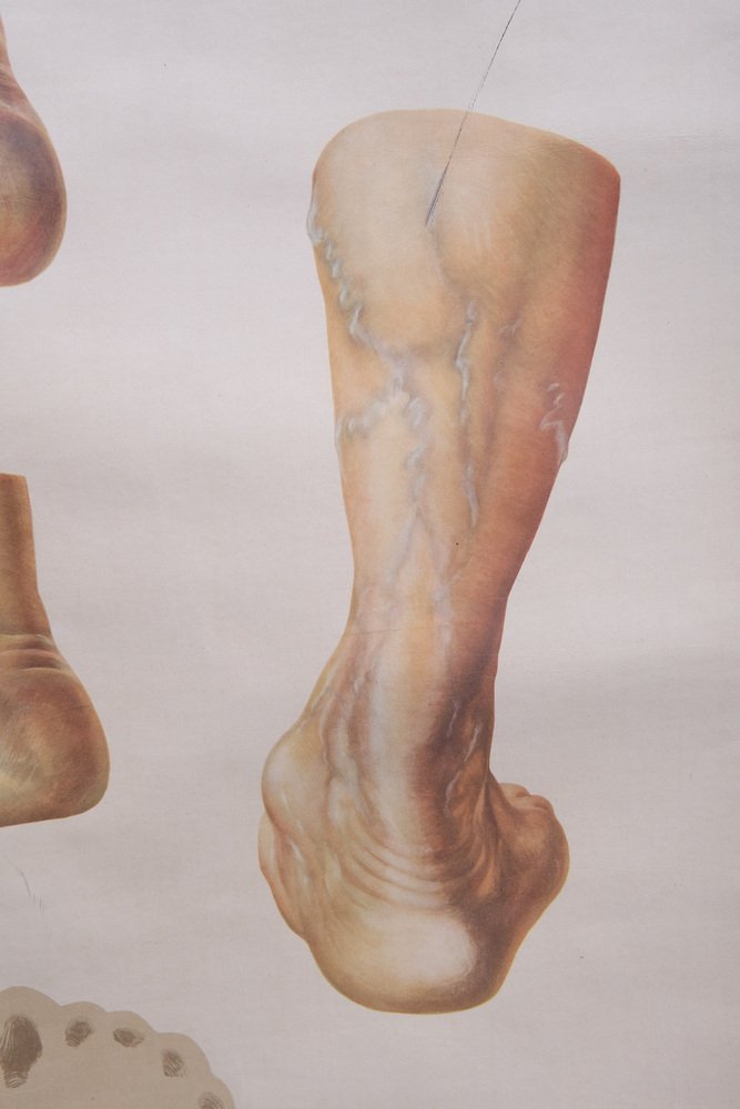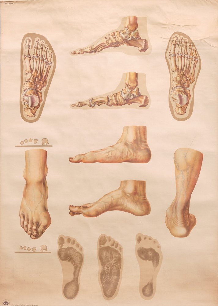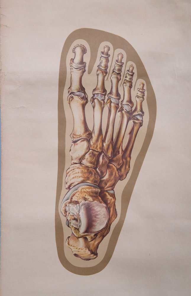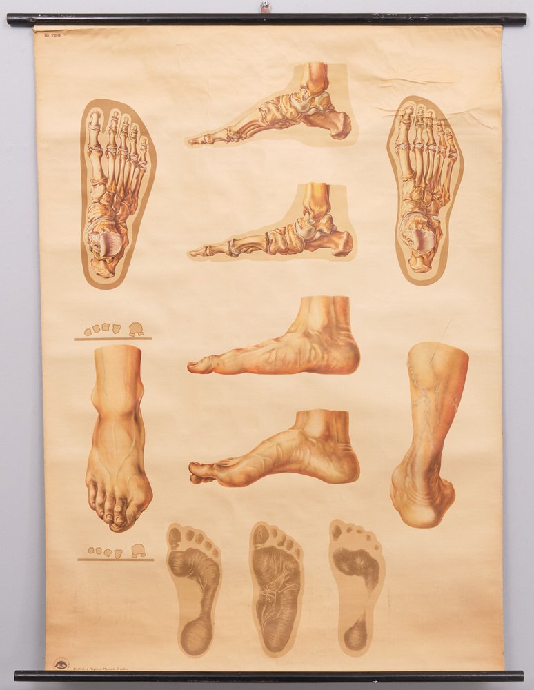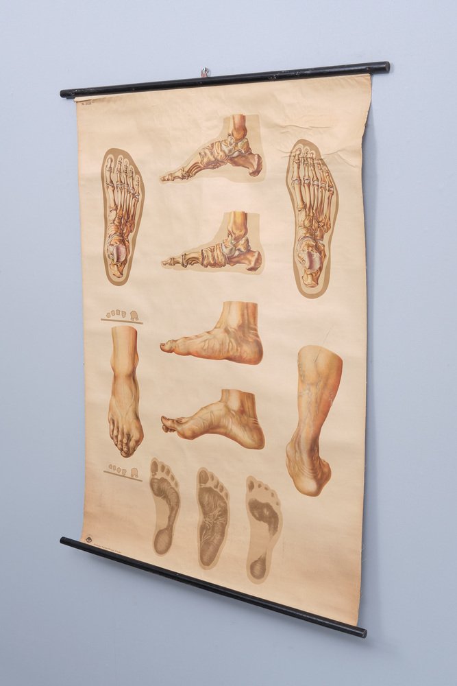 Vintage Pull-Down Medical Wall Chart Illustrating Orthopedics of Foot, 1935