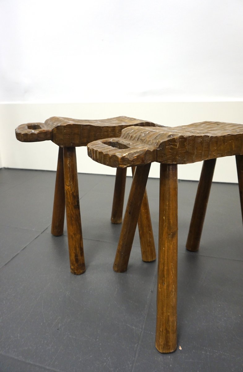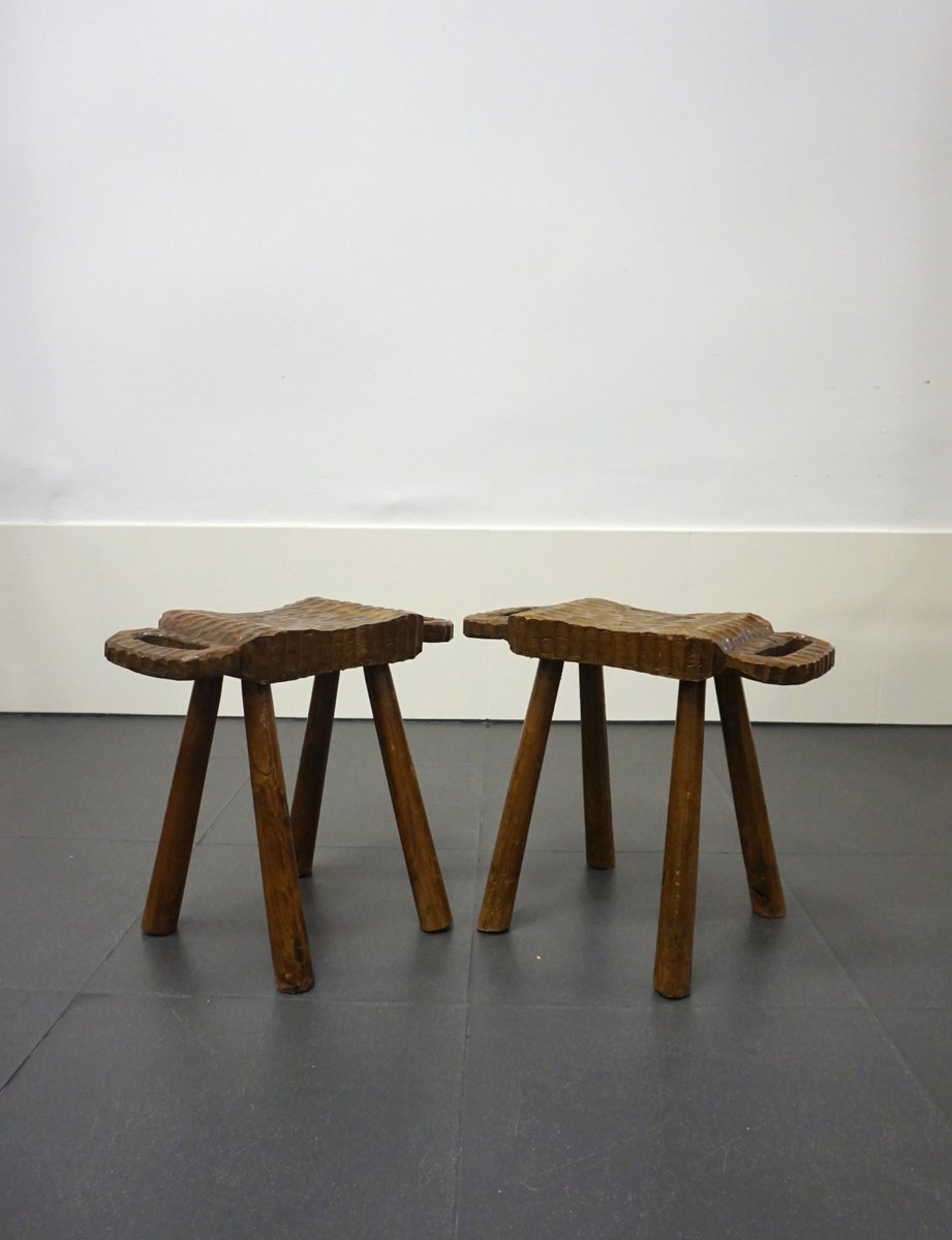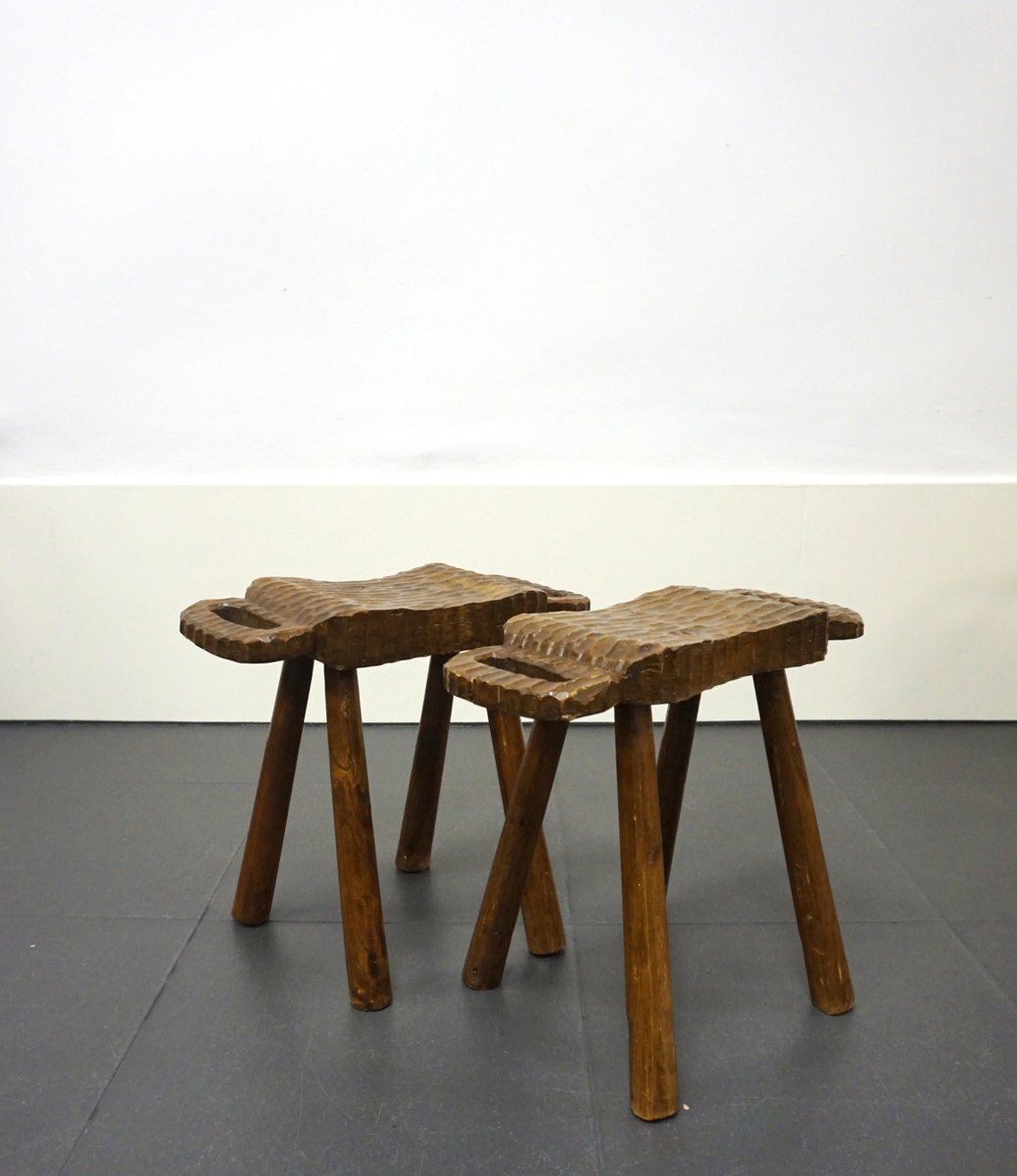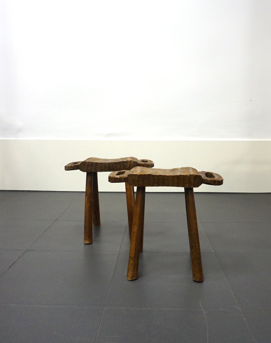 Vintage Rustic Stools, 1950s, Set of 2