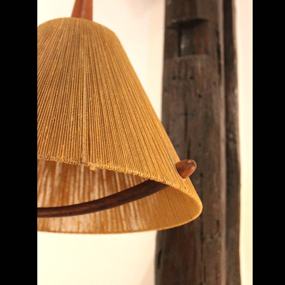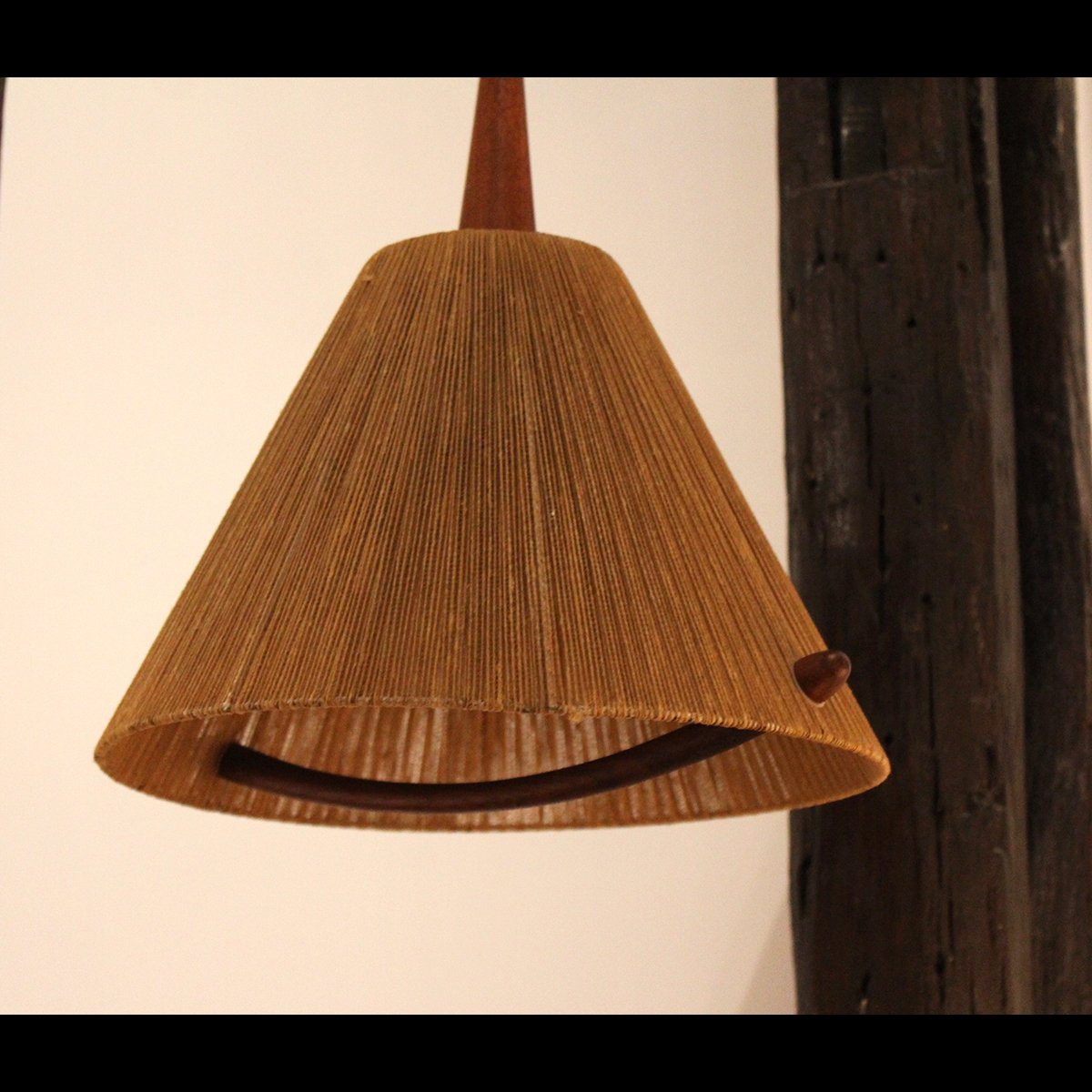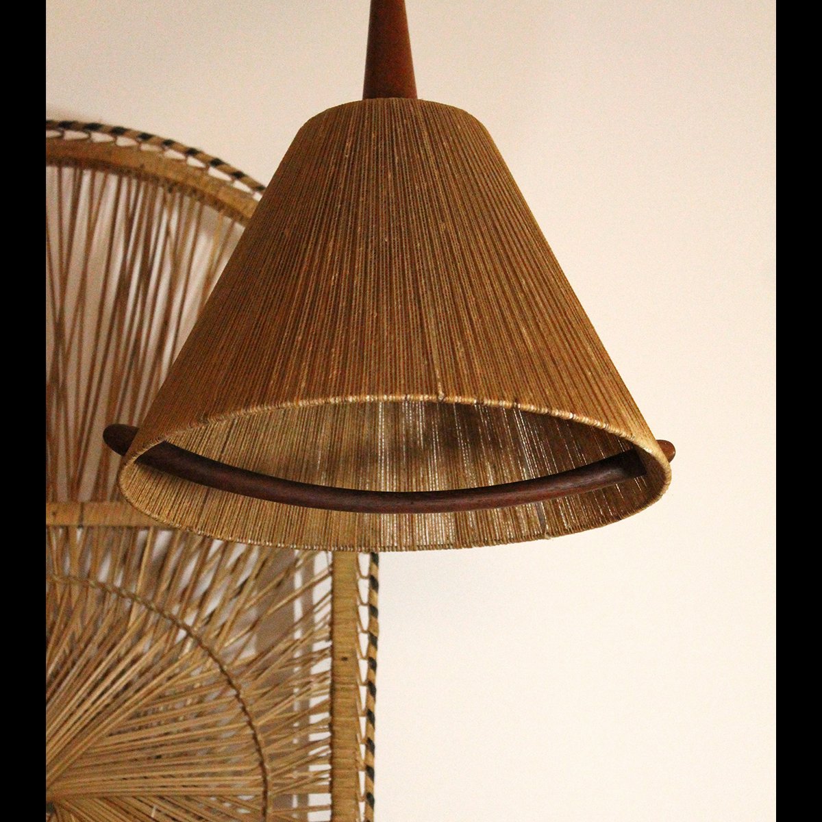 Vintage Scandinavian Pendant Light in Raffia and Teak from Temde, 1960