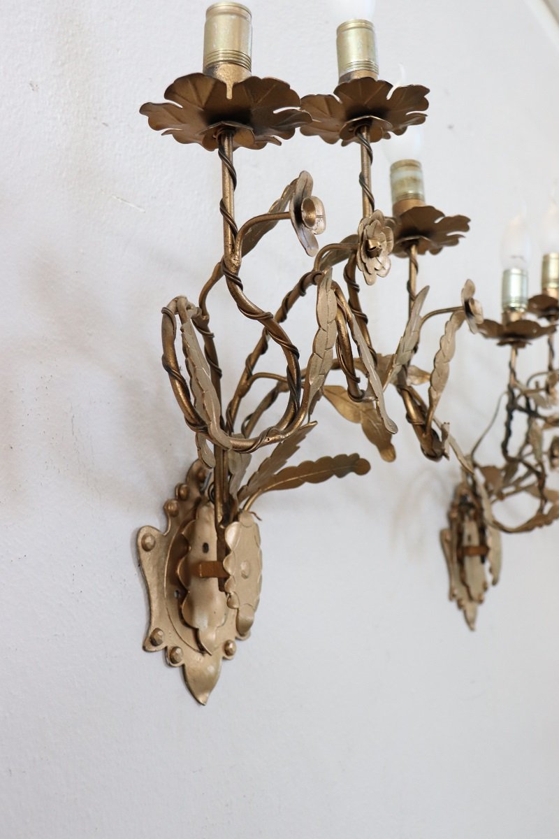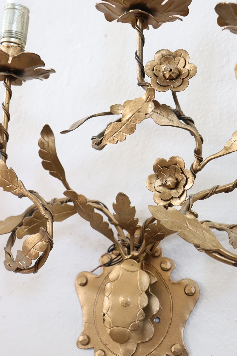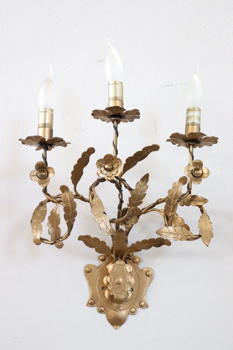 Vintage Sconces in Gilded Iron, 1980s, Set of 3