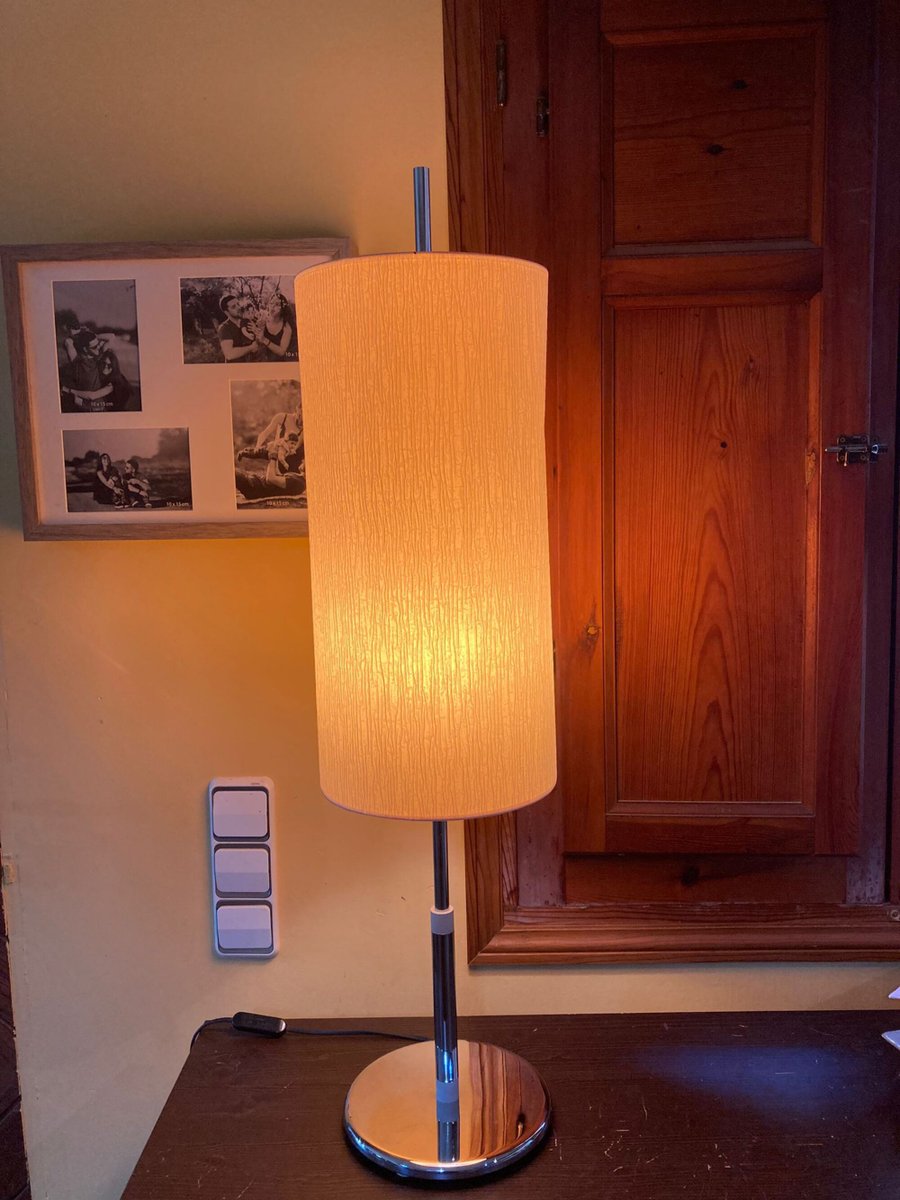 Vintage Staff Leuchten Style Table Lamp in Chrome Metal and Fabric, 1989