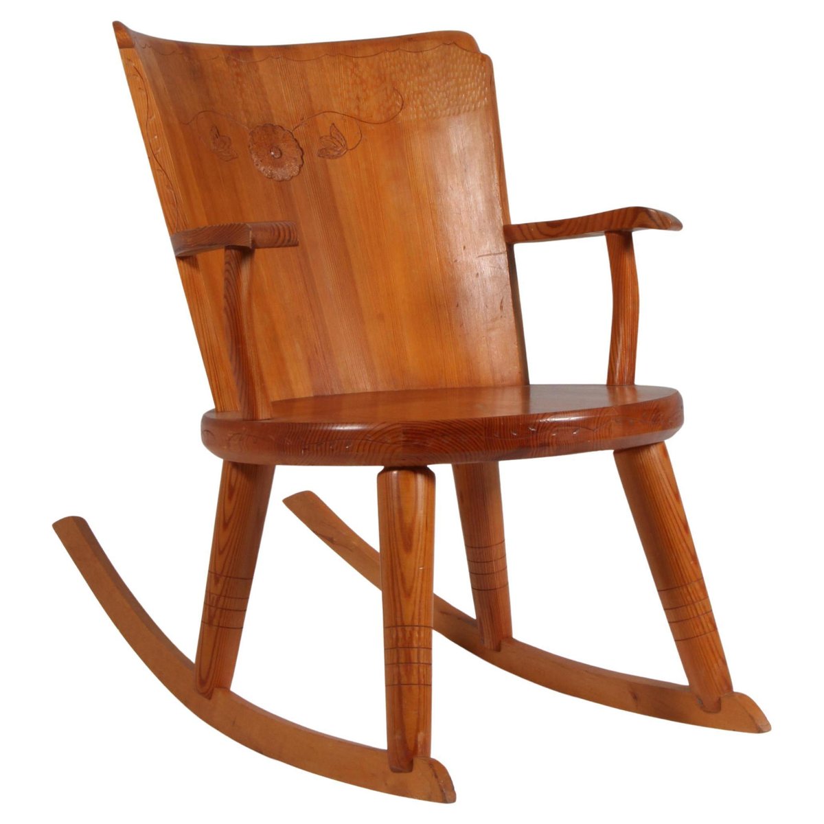 Vintage Swedish Rocking Chair in Pine, 1970s