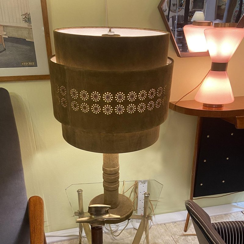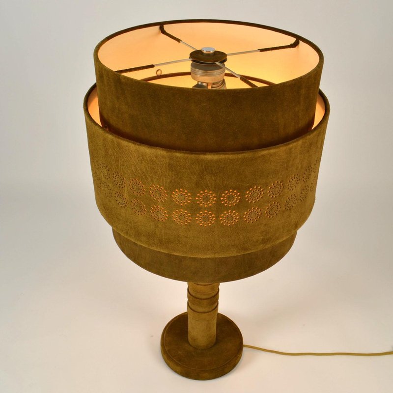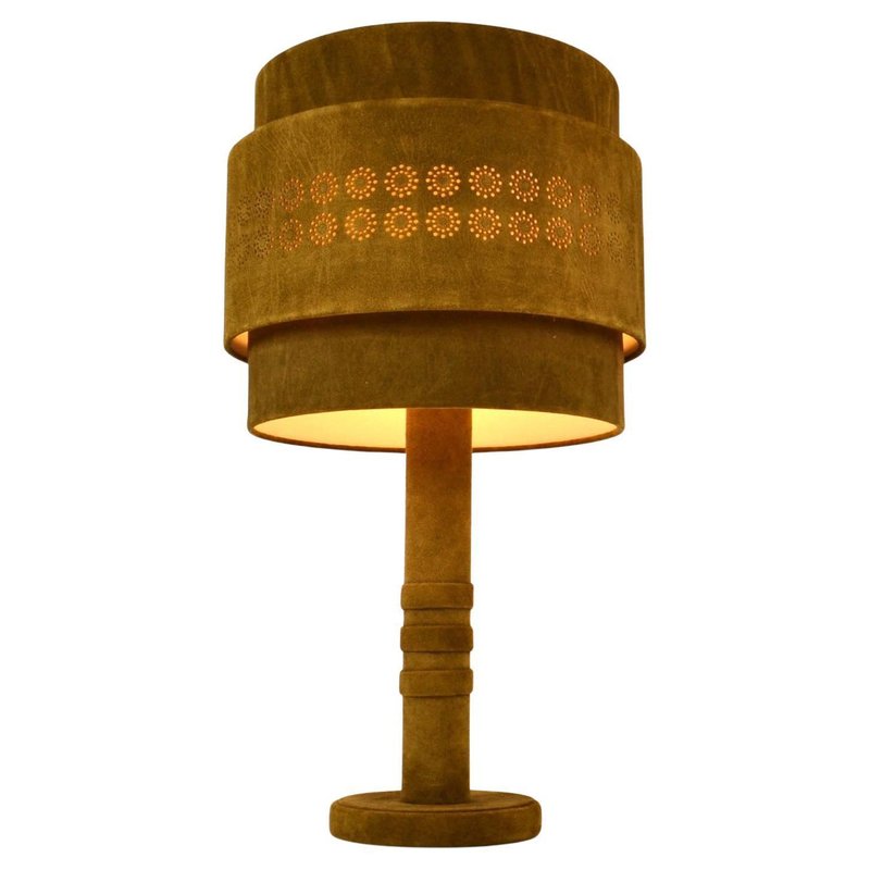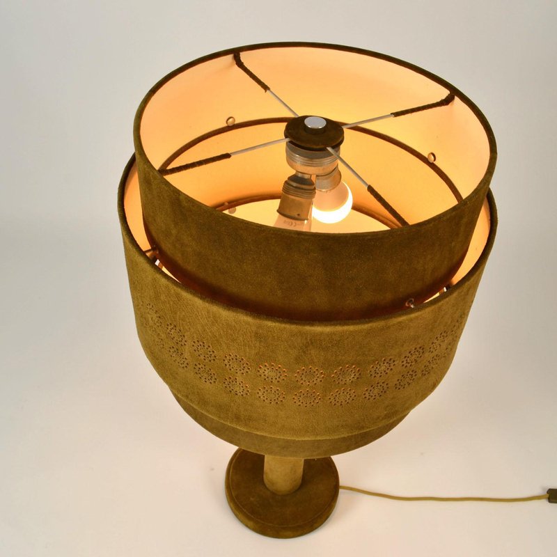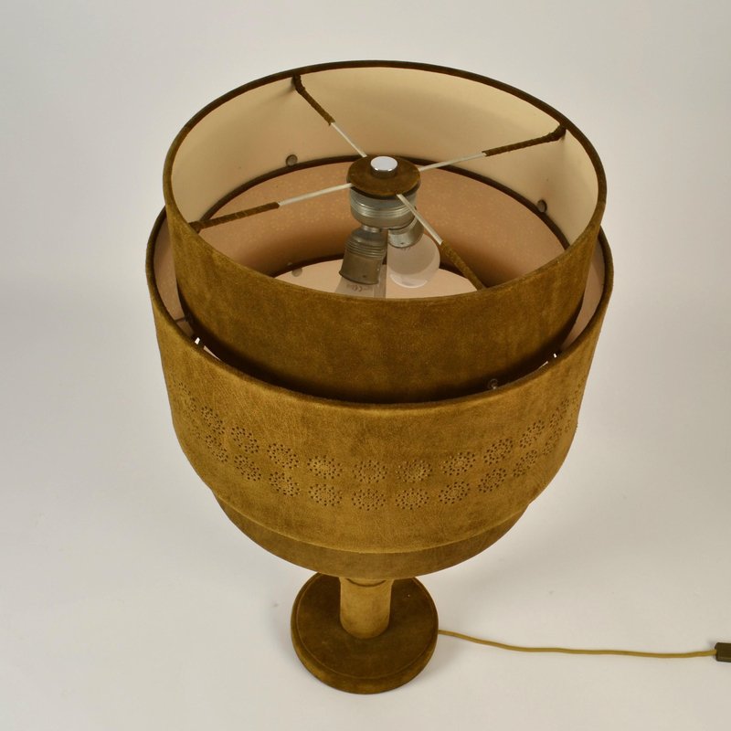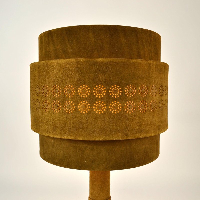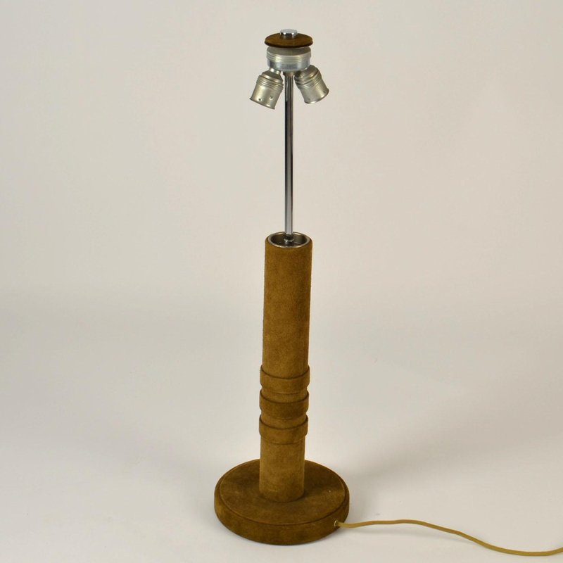 Vintage Table Lamp in Suede Leather and Brass, 1960s, Set of 2