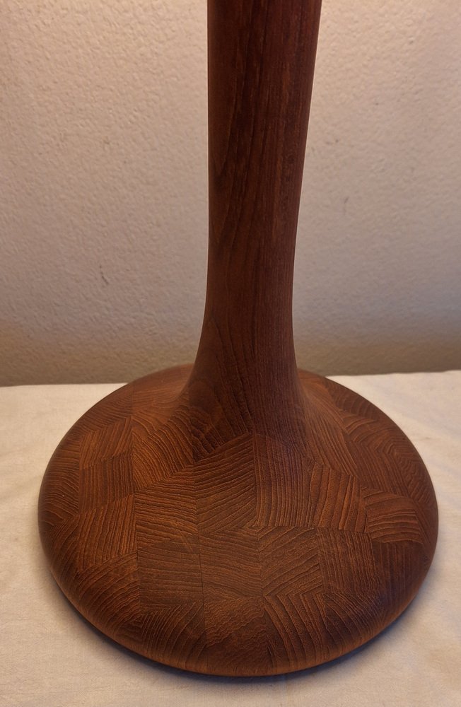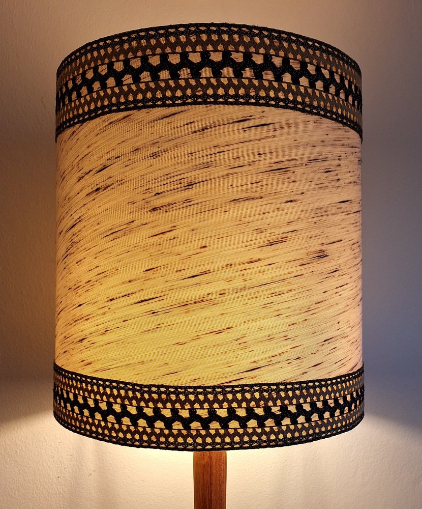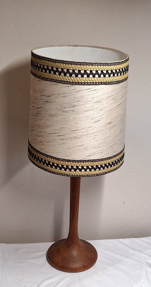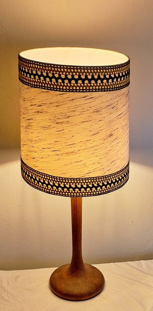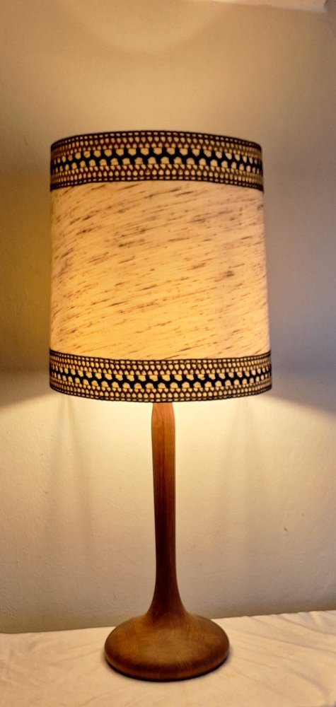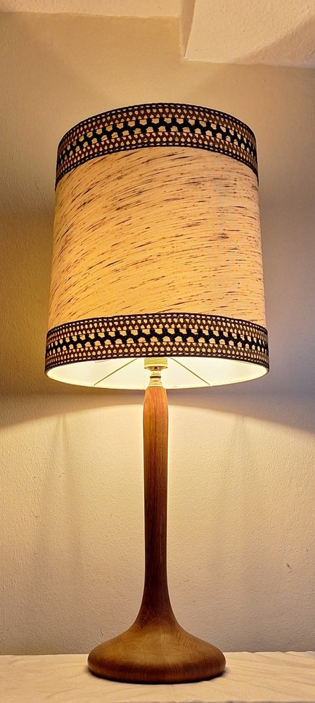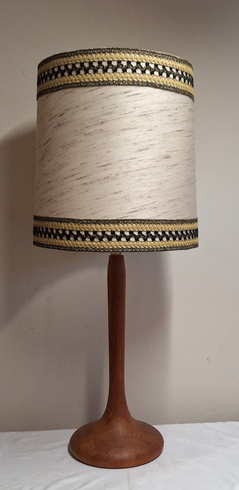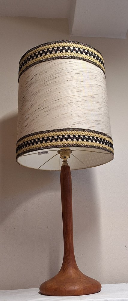 Vintage Table Lamp with Teak Base and Hand-Finished Fabric Shade from Lamplove, 1970s