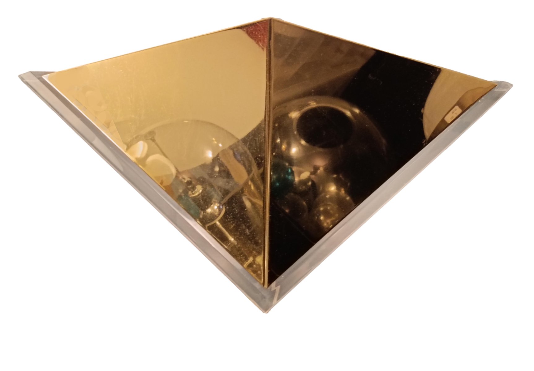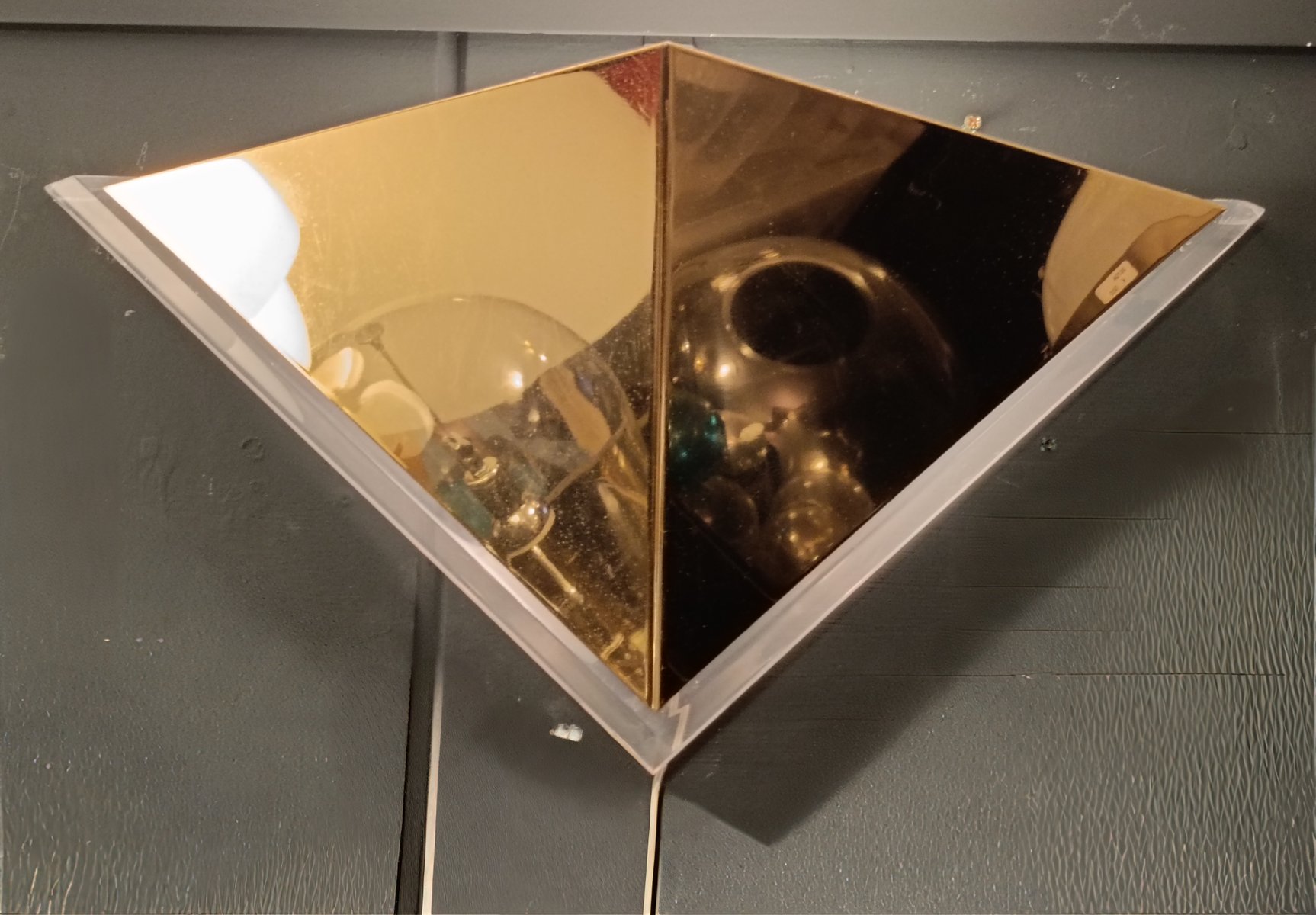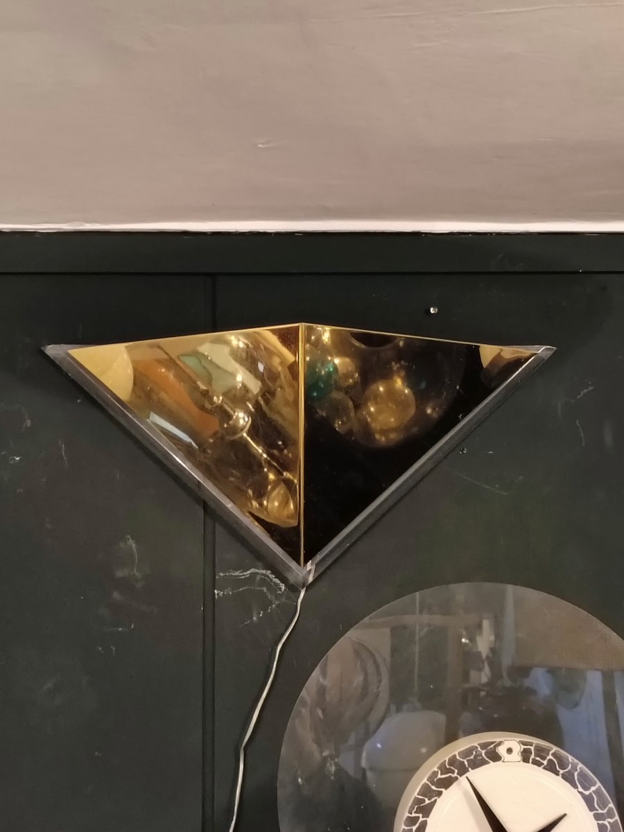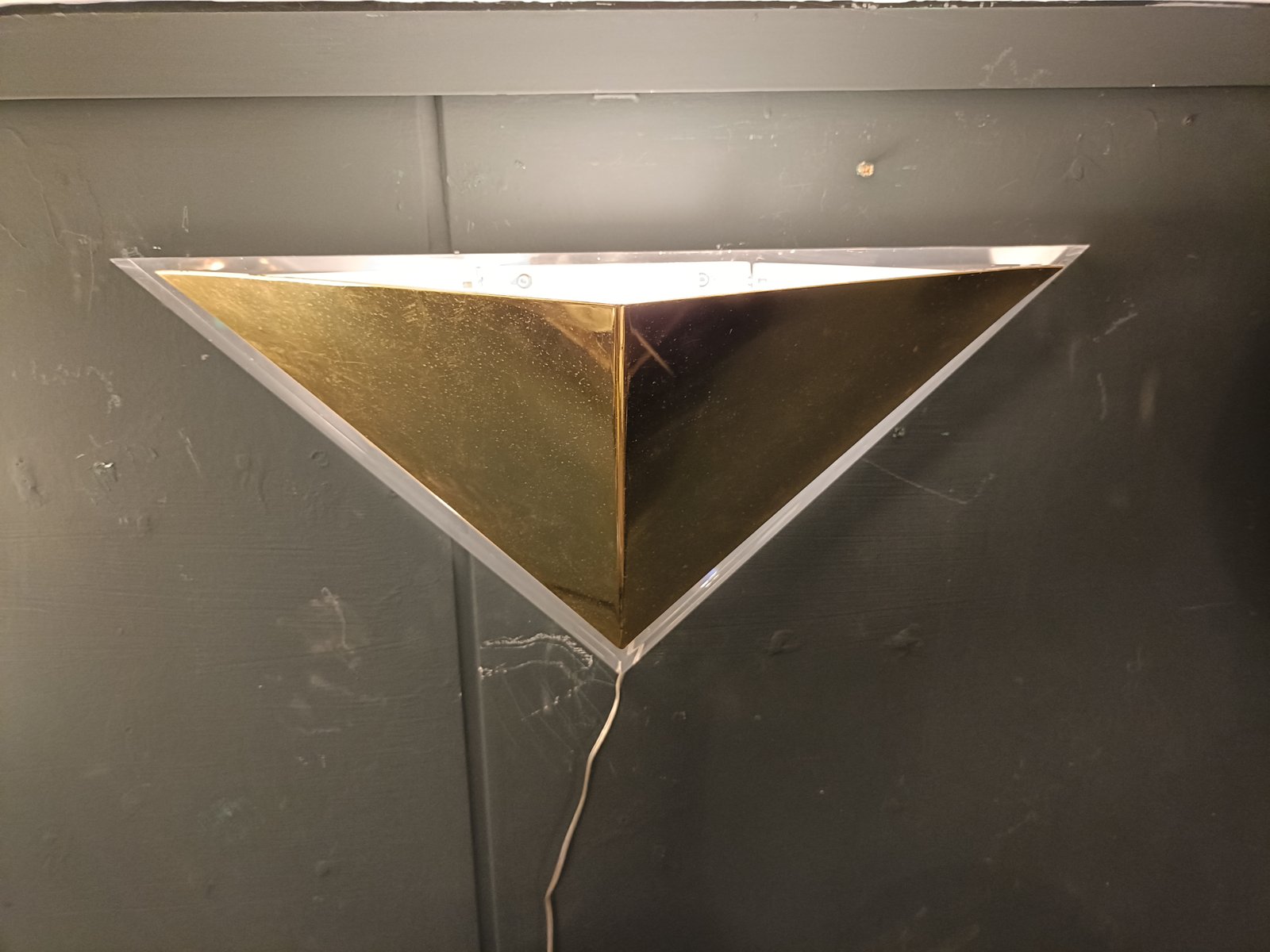 Vintage Triangular Wall Lamp in Gold-Plated Metal and Acrylic, 1970s