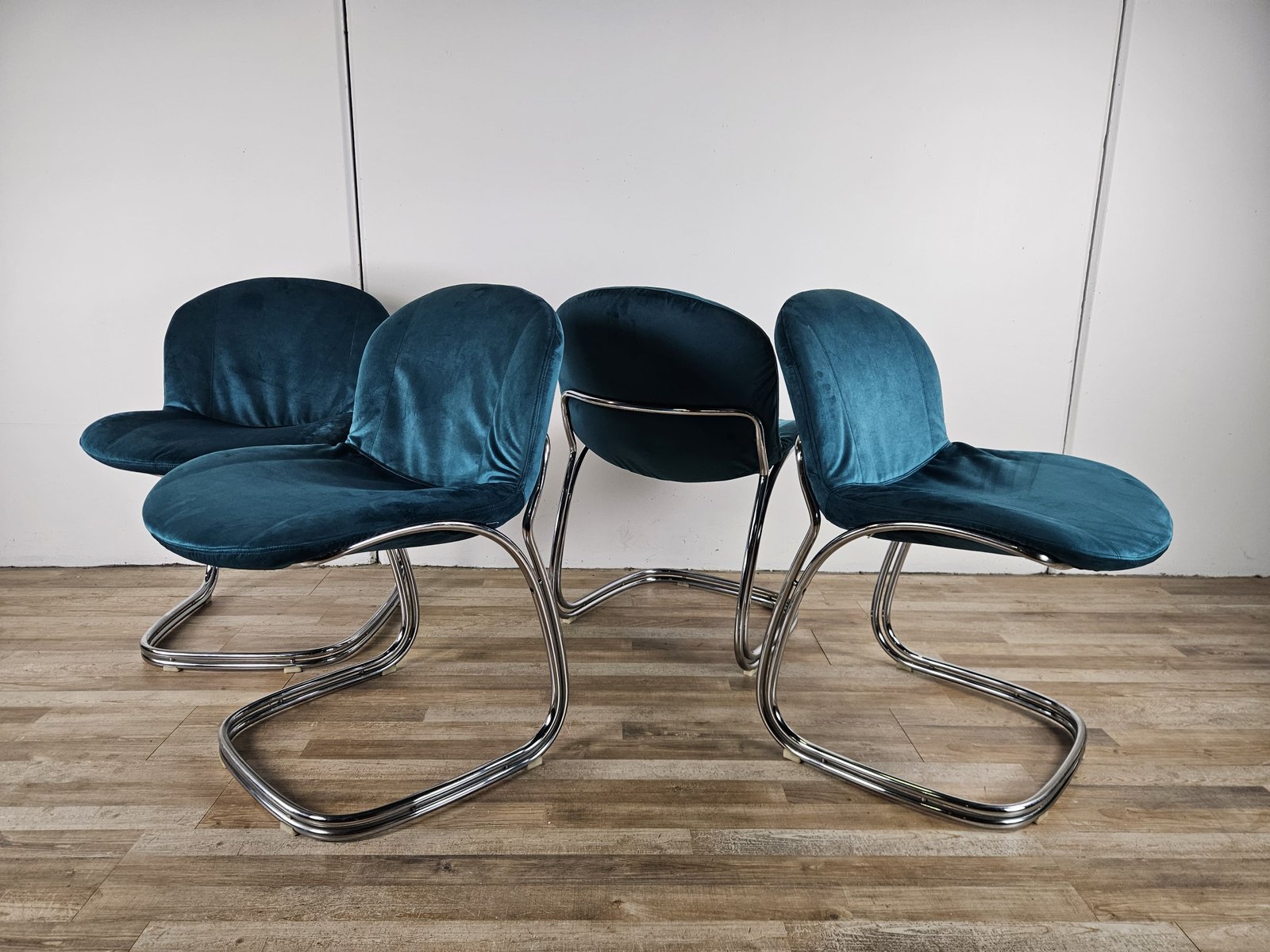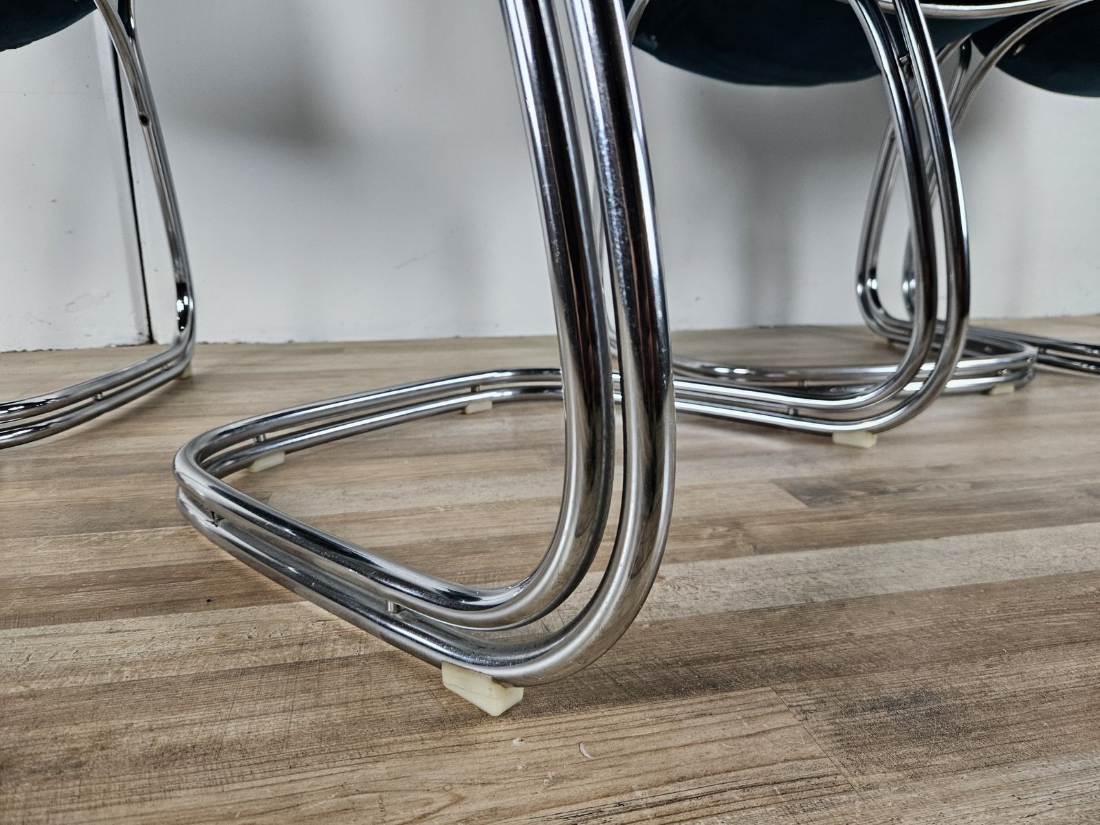 Vintage Tubular Chairs in Blue Velvet, 1970, Set of 4