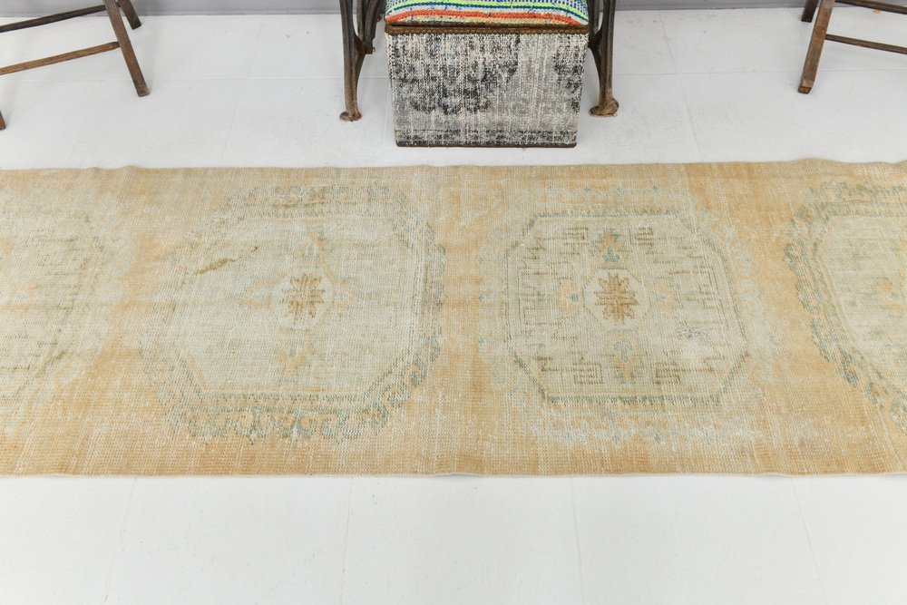 Vintage Turkish Faded Runner Rug in Wool