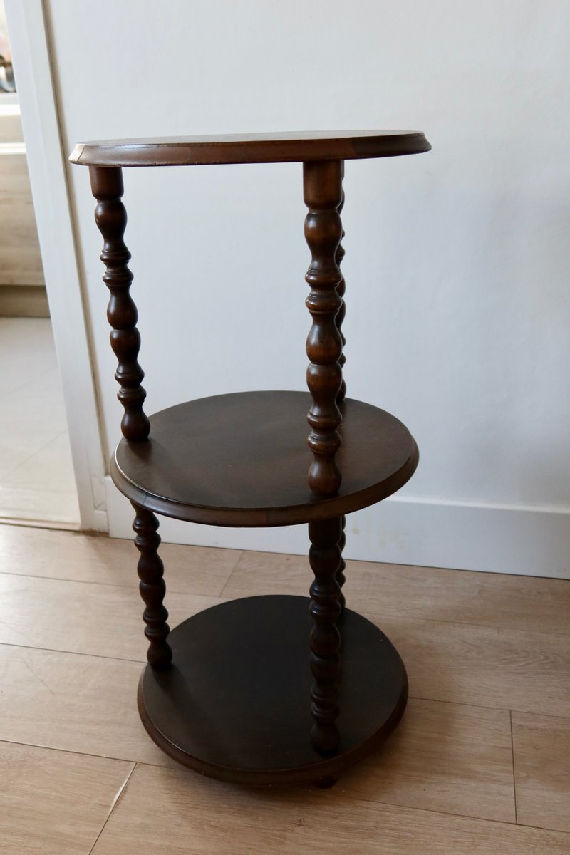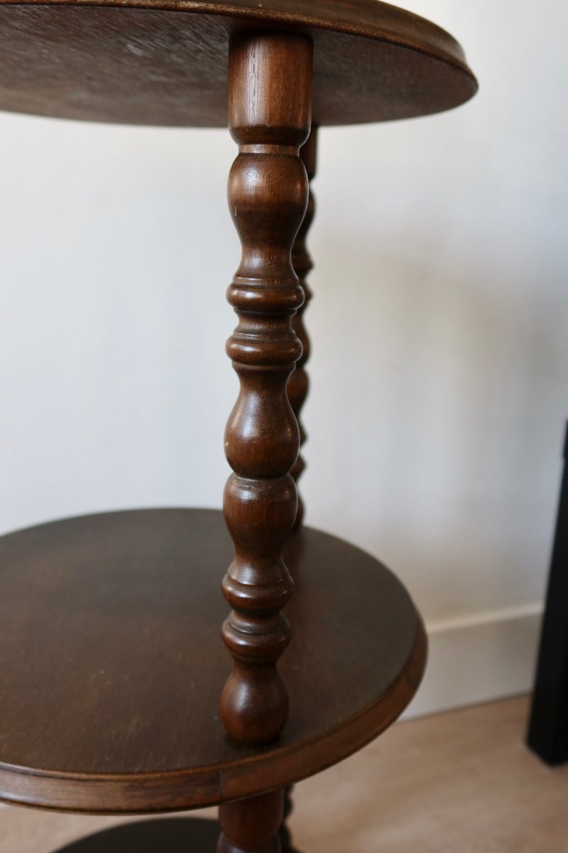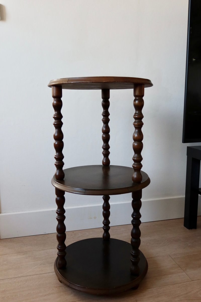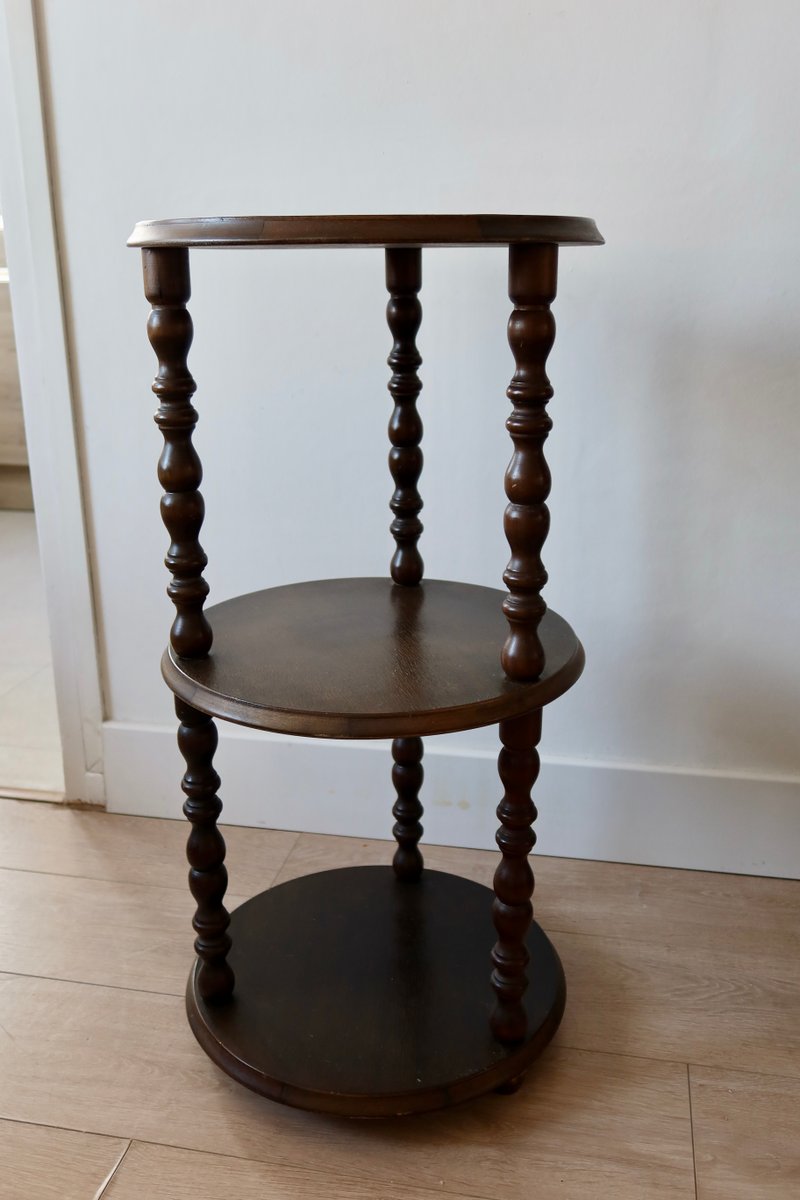 Vintage Turned Wood 3-Level Side Table, 1970s