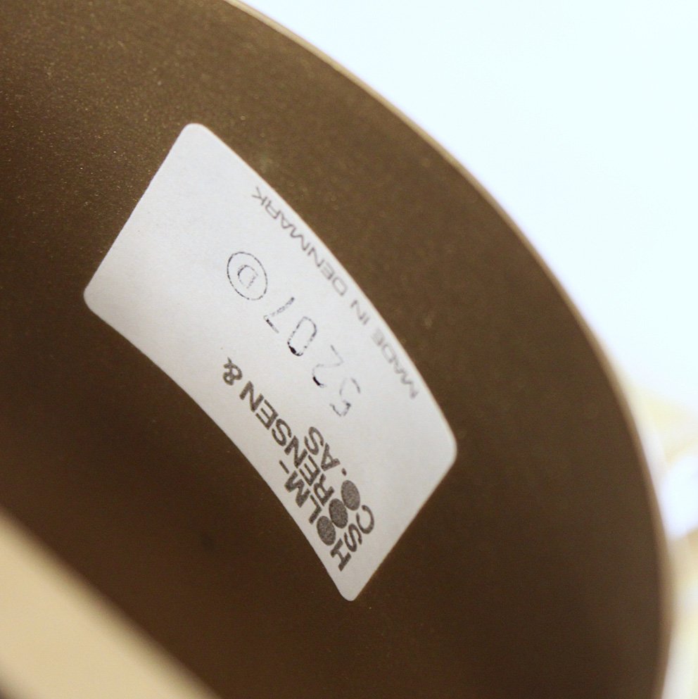 From the 1960s onwards, Holm Sørensen’s style changed utterly. His designs diverged from colorful, geometric table lamps and floor lamps, to pendants with unfinished brass and copper surfaces. These pendant lamps showcase Holm Sørensen’s interpretation of the Brutalist style, which was popular from the 1950s to the mid-70s. Originally coined by the Swedish architect Hans Asplund, the style was internationally espoused by many iconic designers, including Le Corbusier.
