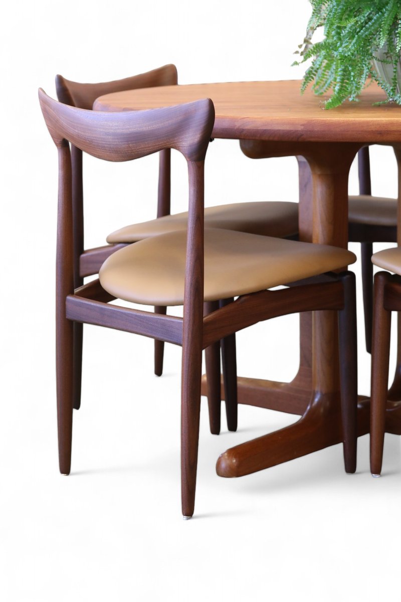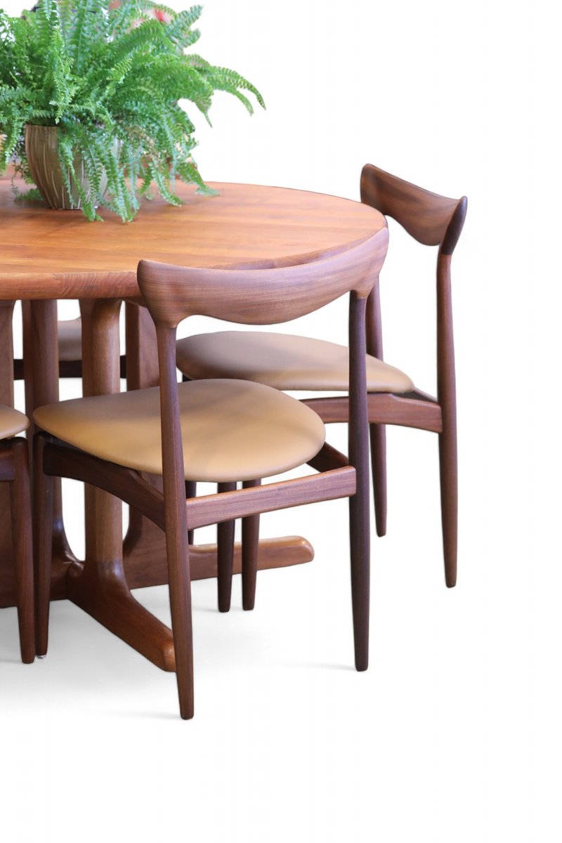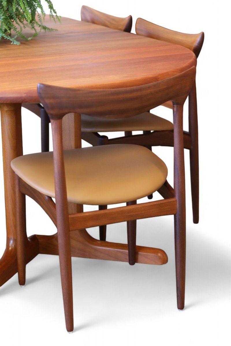 In its heydey, Bramin collaborated with many well respected Danish designers, such as Johannes Andersen, Hans Olsen, Kurt Østervig, and Frank Reenskaug. However, Bramin’s most successful relationship was undoubtedly with H.W Klein, a Norwegian-born designer who moved to Denmark in 1960 to work for the company. Klein's most notable design is the Ønskestolen (mid-1960s), a padded leather lounge chair on a five-star swivel base, but he was also known for wide range of living room suites, dining suites, and storage options. Other memorable Bramin pieces include the classic Rocking Chair No. 182 by Reenskaug (circa 1958) and the idiosyncratically asymmetrical Chair No. 168 by Olsen (circa 1956).