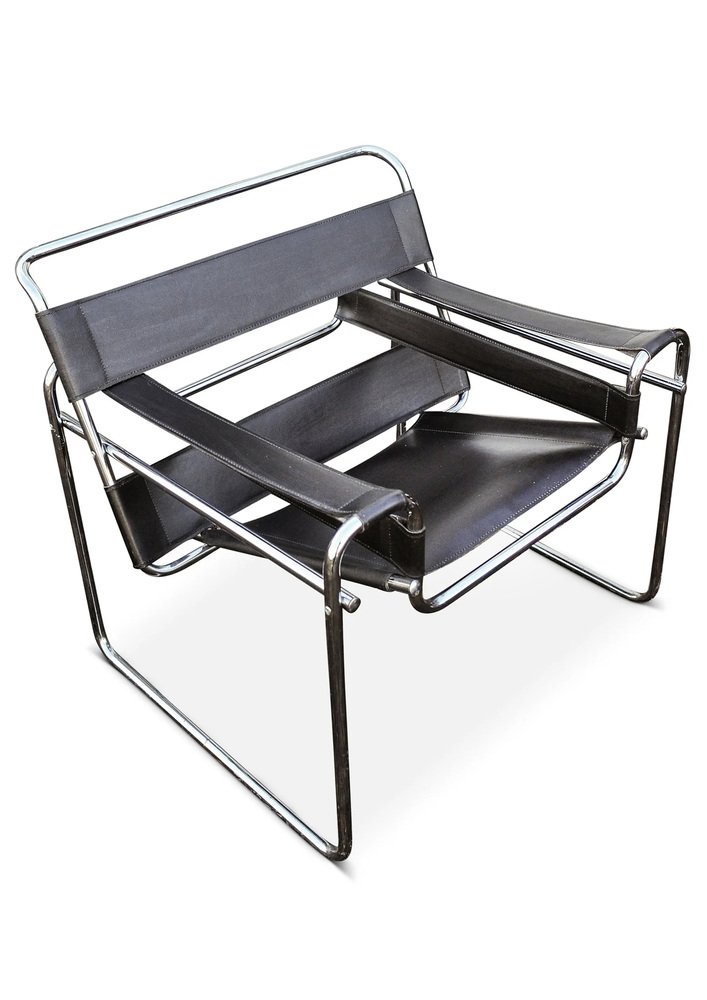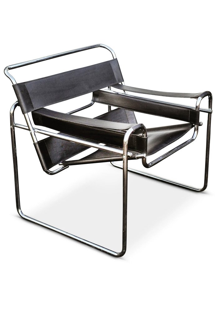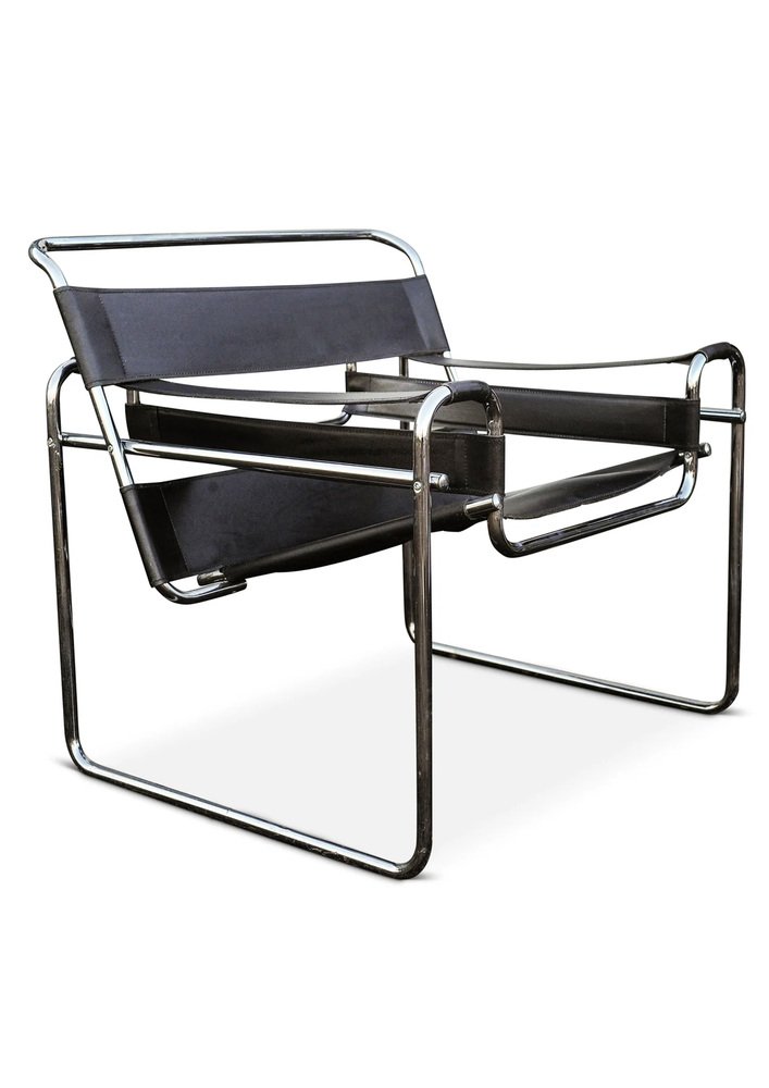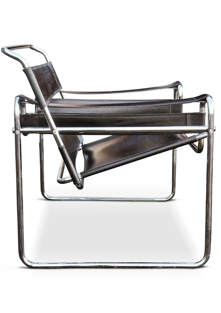 Wassily B3 Armchair in Chrome and Black Leather by Marcel Breuer