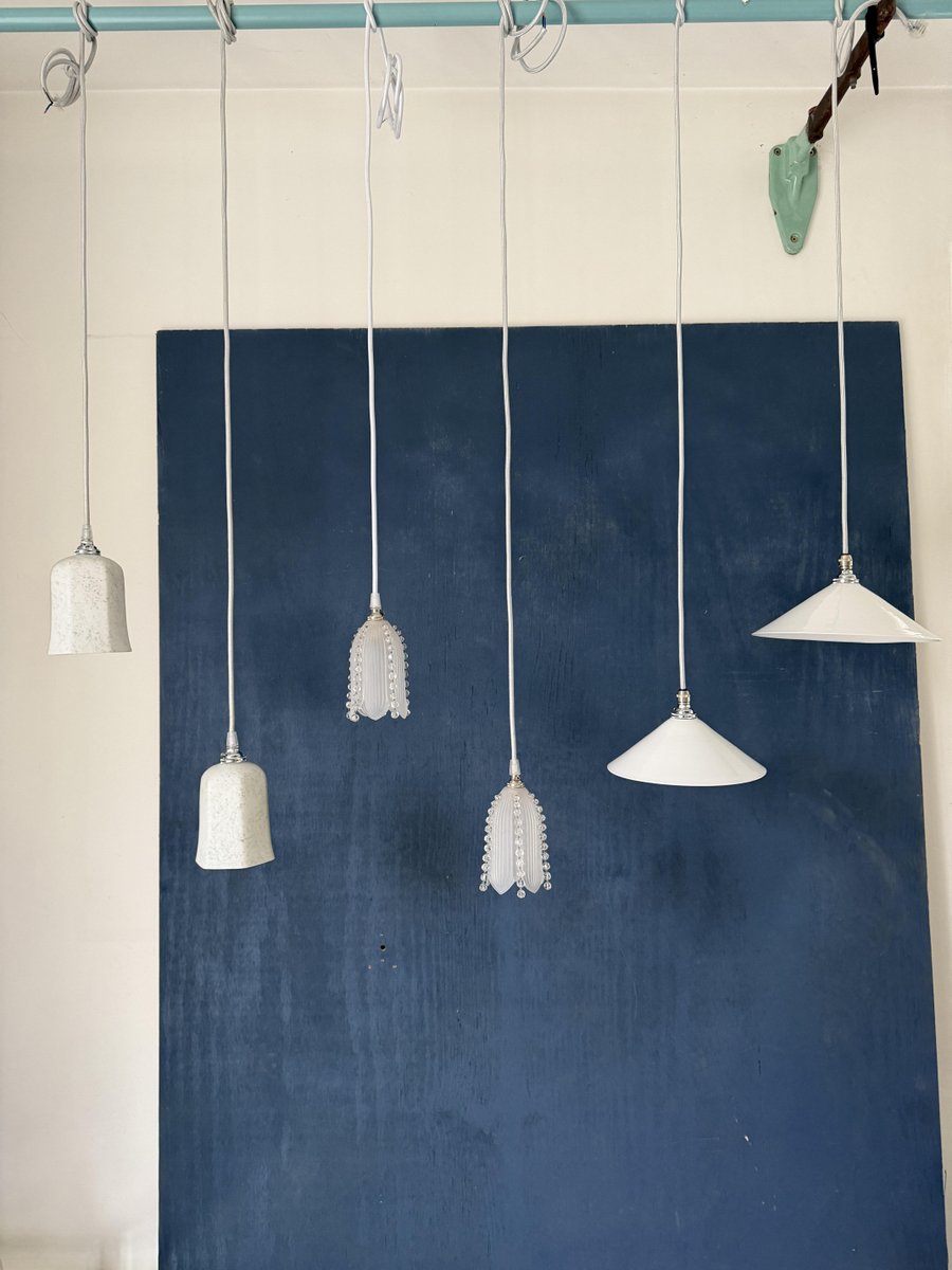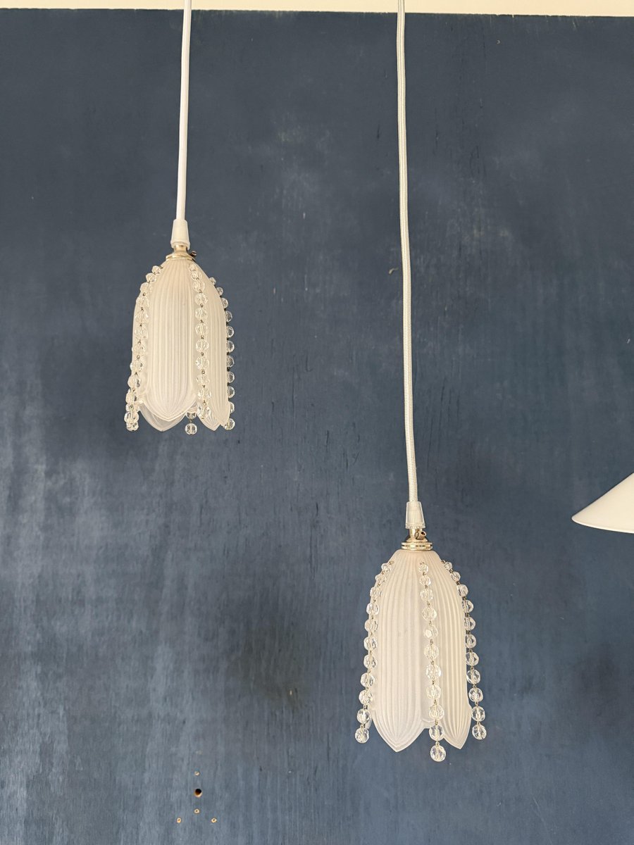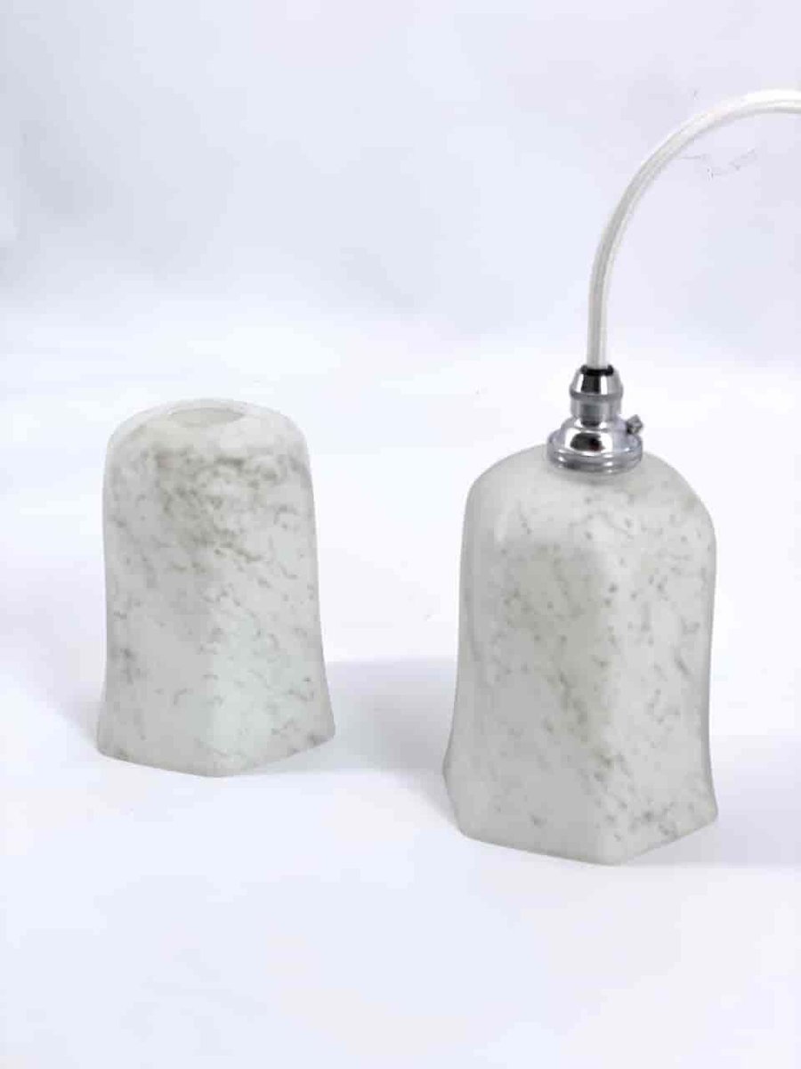 White and Marbled Grey Pendant Lamp, 1920s