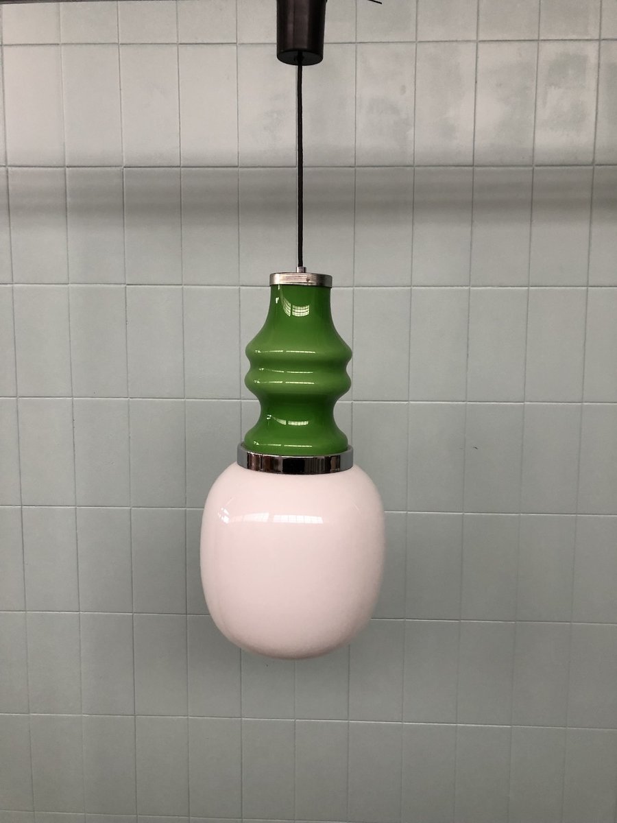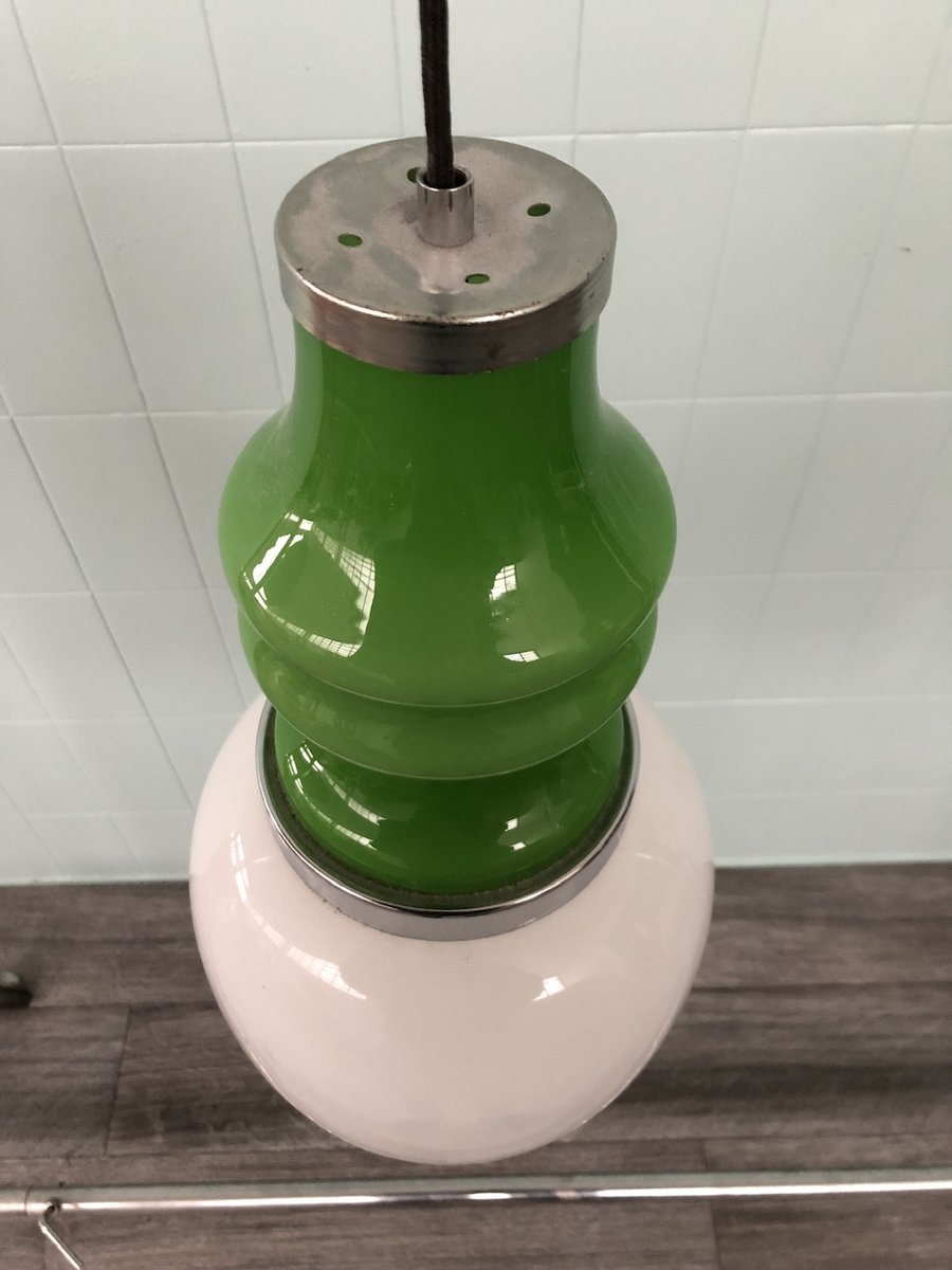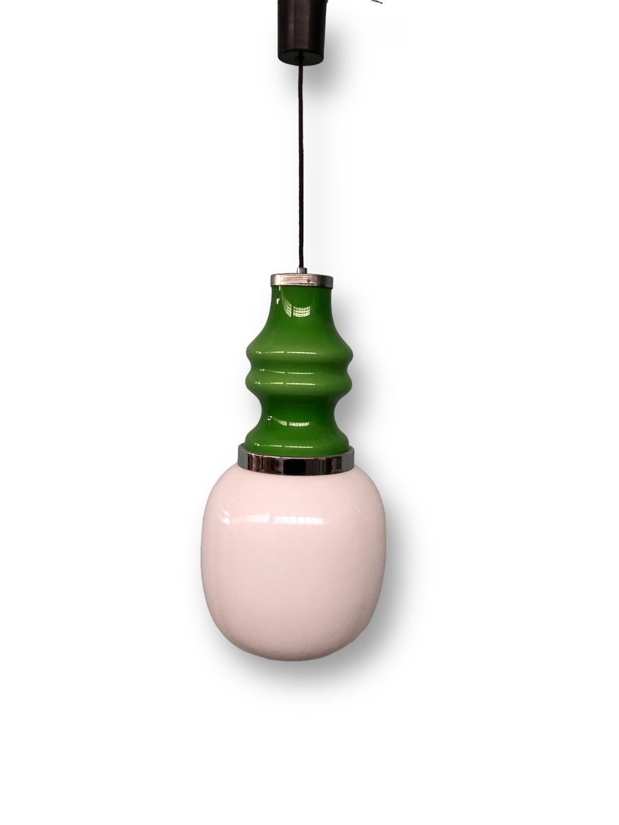 White & Green Opal Glass Chandelier, Italy, 1960s