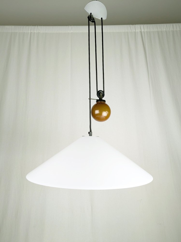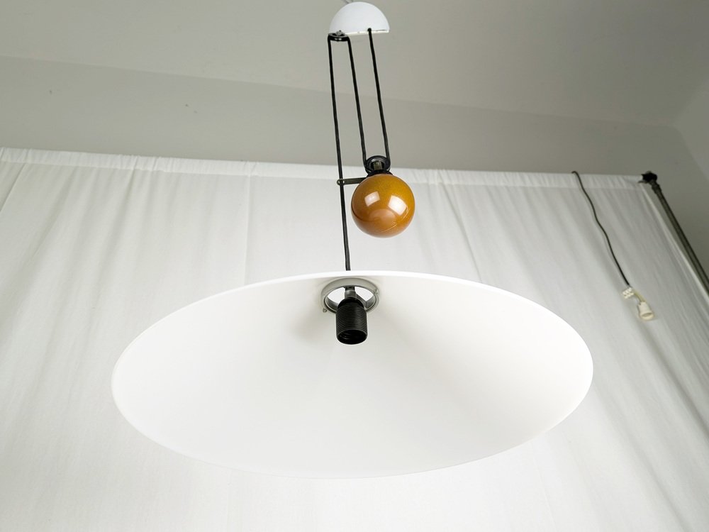 Nickel Plated Brass & White Methacrylate 4006 Pendant Lamp by A. & p.g. Castiglioni for Kartell, 1959