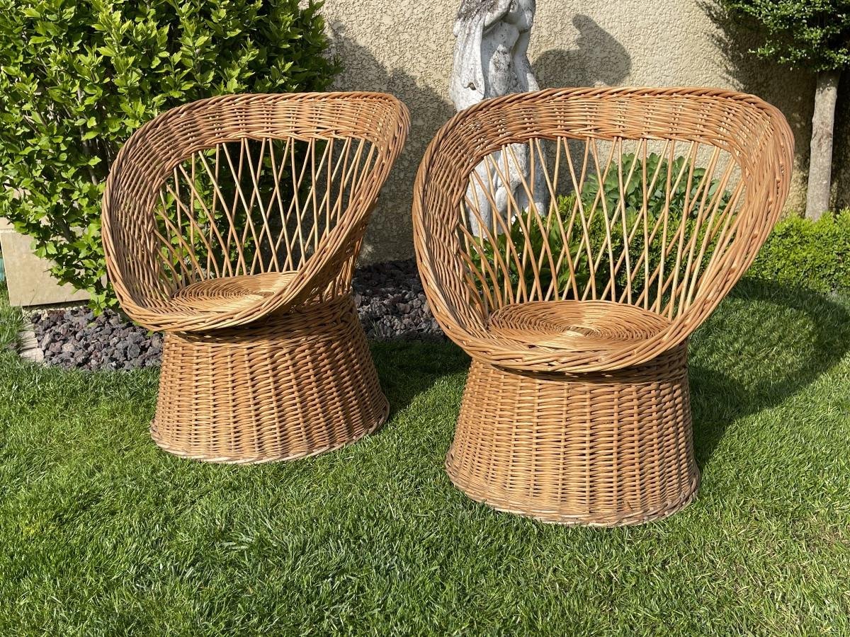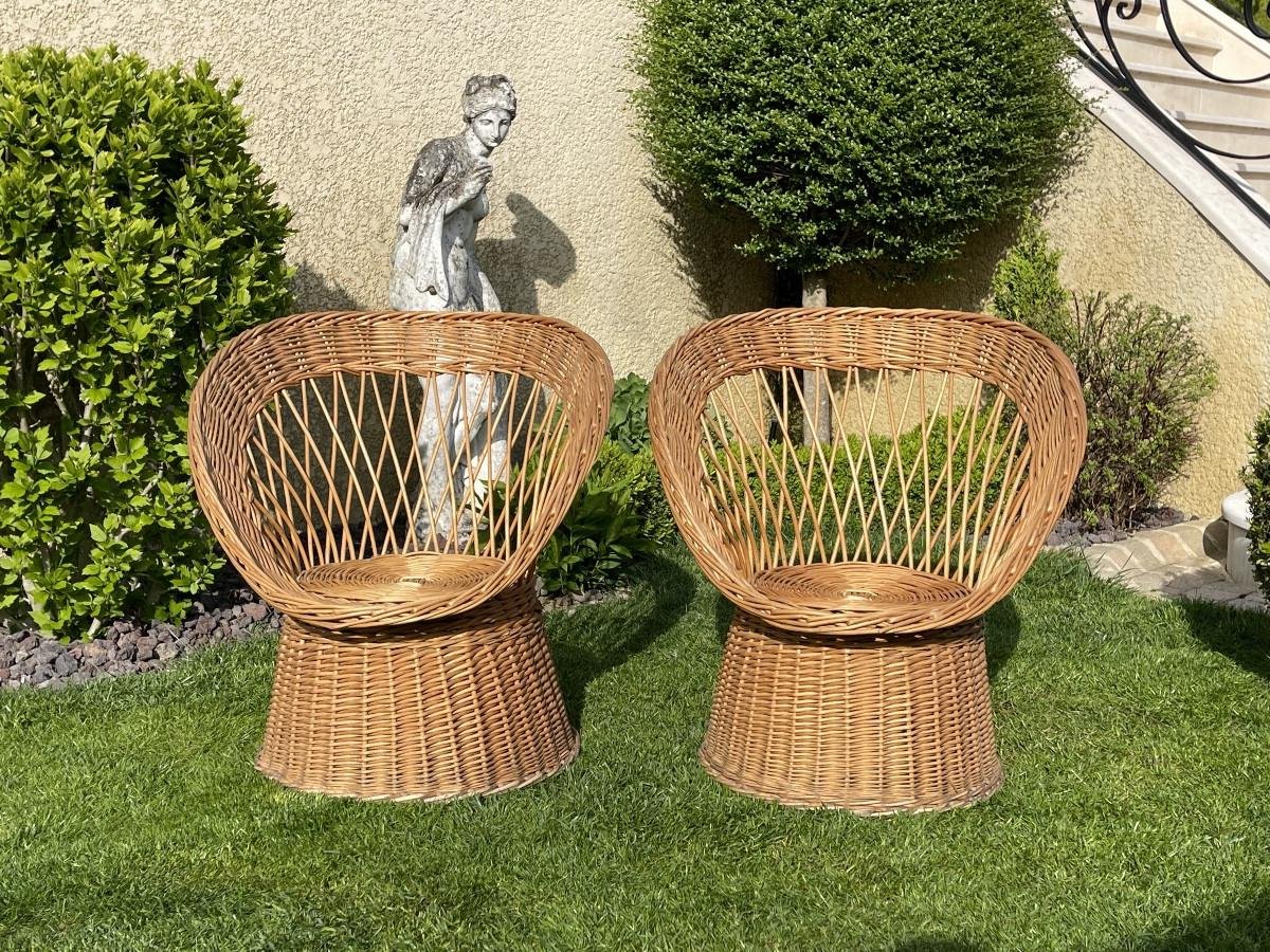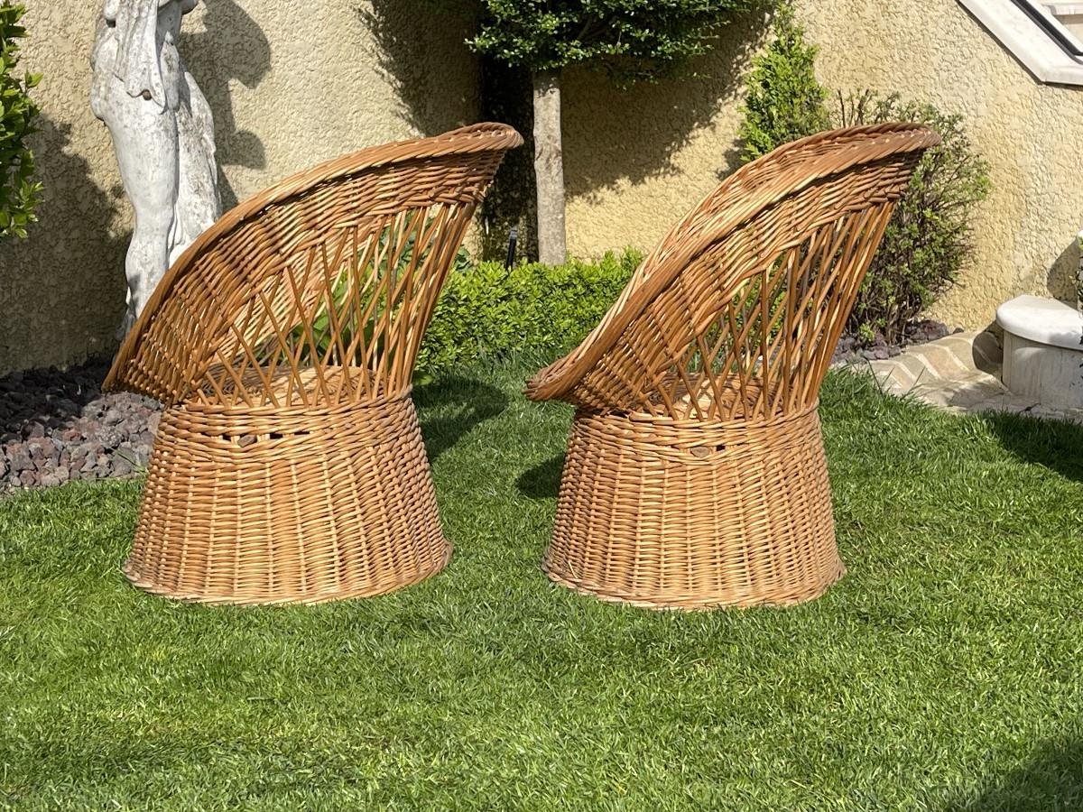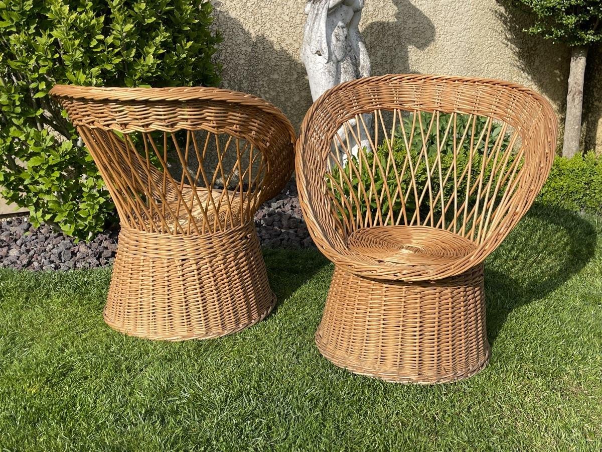 Wicker Armchairs, Set of 2
