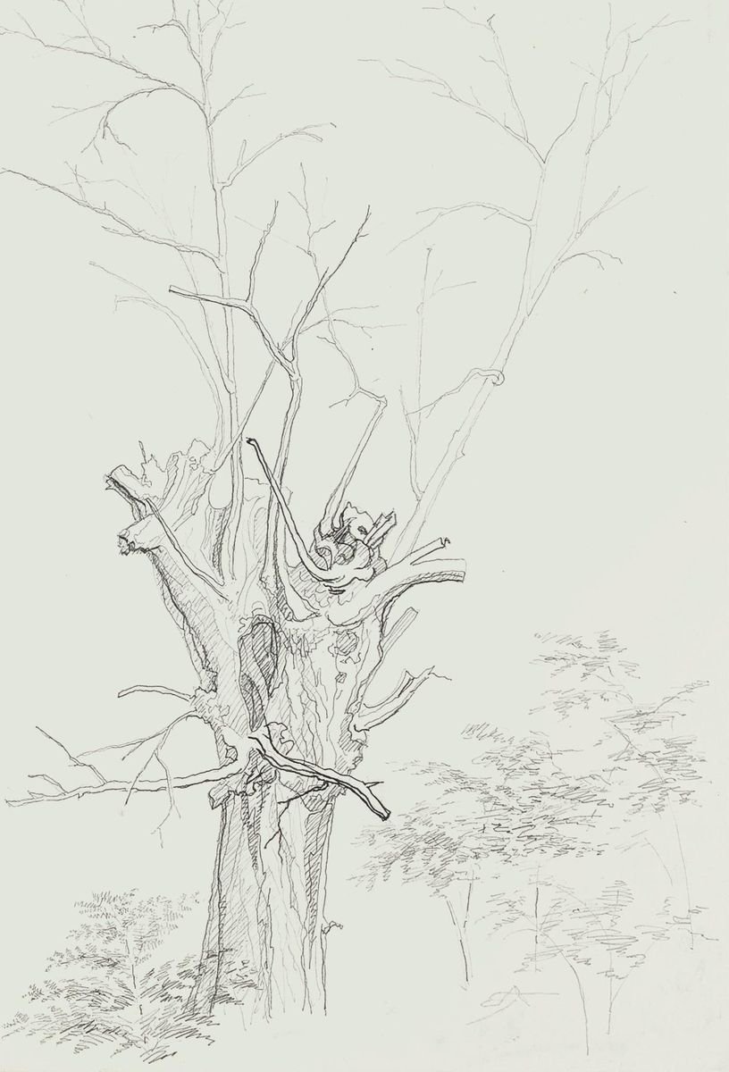 Winter Tree - Original Pencil Drawing by French Master mid 20th Century Mid 20th Century