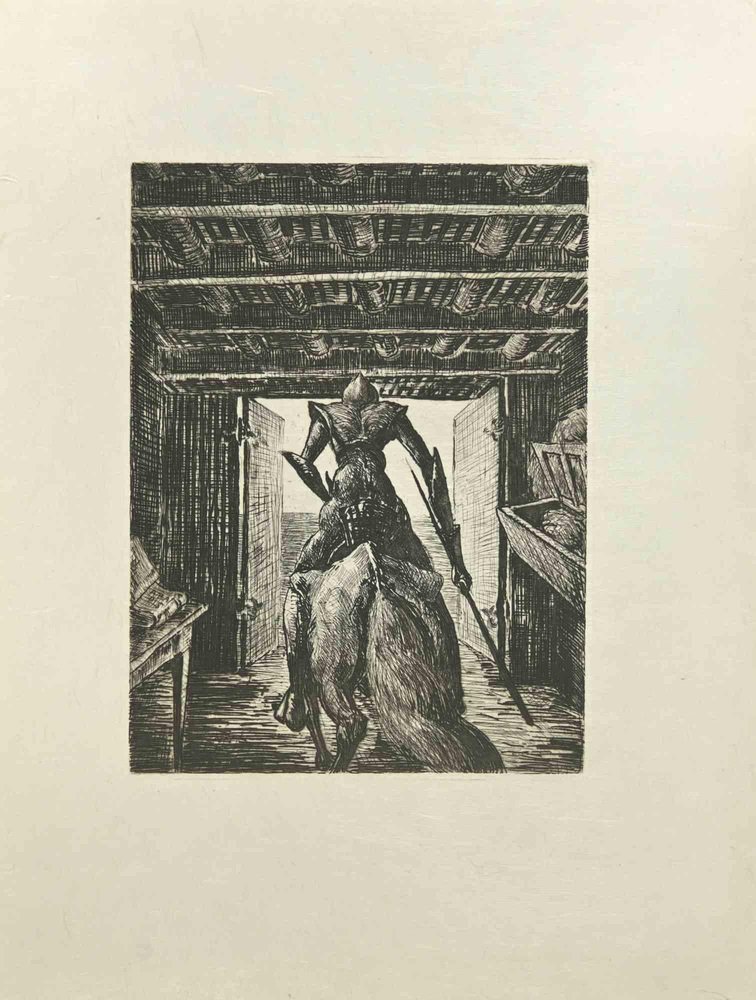 Wladyslaw Jahl, Don Quixote Galloping, Etching, 1951