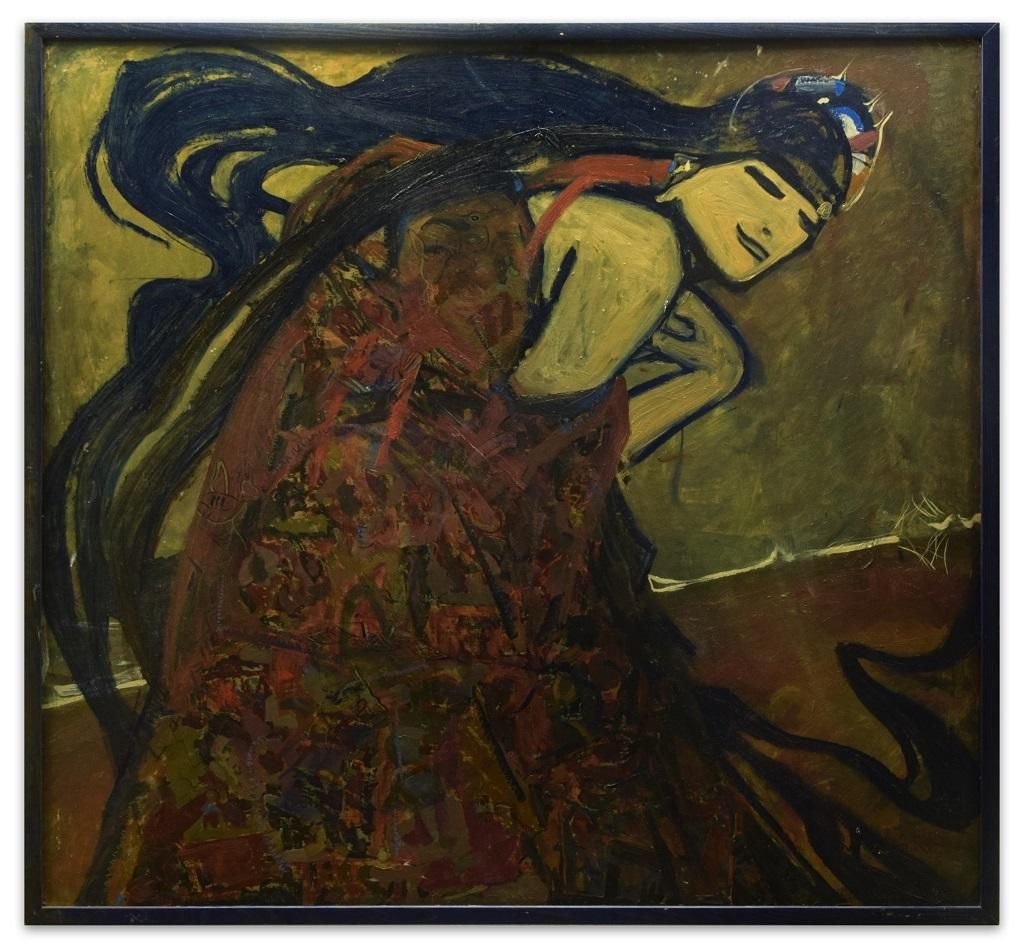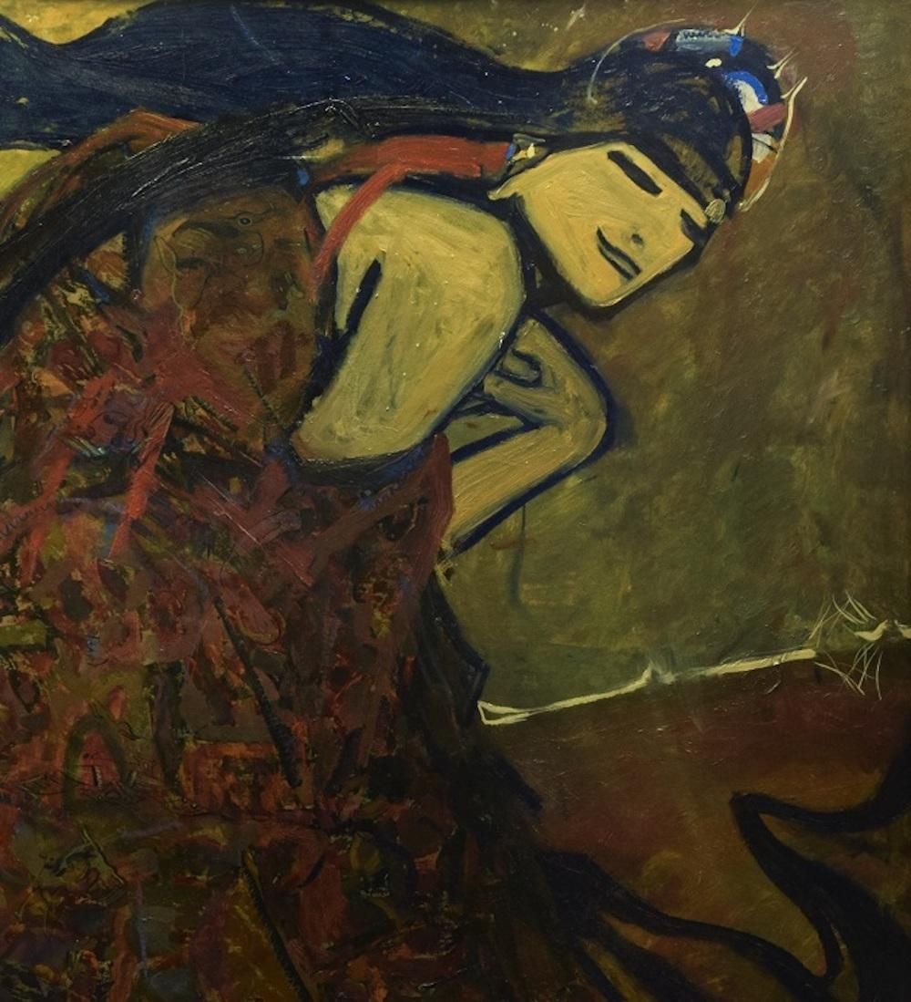 Woman is an original oil painting, realized in the 2000s by the emerging artist Anastasia Kurakina. Signature and title on the back. Include frame: 98 x 105 cm Very good conditions, includes a black contemporary wooden frame. This beautiful artwork represents a woman portrait. The pictorial style used by the artist recalls the beautiful paintings of German abstract expressionism. ANASTASIA KURAKINA was born in 1987 in Moscow (Russia). She studied in Moscow and in Rome. At present, she lives and works in Paris, London, Monte Carlo, Milan, Moscow, and Rome. Her psychologically analytical works are a kind of art fables. A simple image or object from life transforms into a metaphora of life itself in her paintings. Her portraits and graphic works are philosophical essence of visible and seeming reality. Art education: 2019 – Sorbonne University, Paris; 2012-2014 – MA Fine Art at the Academy of Fine Arts of Rome; 2007-2012 – Academy of Fine Arts of Rome; 1998-2005 – Moscow Academic Art Lyceum of the Academy of Fine Arts of Russia. Personal exhibitions: 2019 – Rome, Marino Gallery; 2018 –Milan, Zanuso Gallery; 2017 – London, Russian Cultu al Centre; 2017 –Luzern, Switzerland, International Comic Festival; 2017 – Rome, Russian Center of Culture and Science; 2016 – St.Petersburg, the Pushkinskaya 10 Art Center, Art League Gallery; 2016 – Porto Cervo, Sardinia, evening solo show at MDM Museum of Contemporary Art; 2016 – Rome, American Embassy; 2013 – Tolentino (MC), International Art Museum of Tolentino; 2006 – Moscow, Central House of Artist. Awards: 2017 – Rome, I prize of the national award “Arte &sport” of the AONI (National Italian Olympic Academy); 2015 – Rome, Adrenalina prize I prize; 2013 – Rome, Adrenalina prize under 35 and prize of the public, Museum of Contemporary Art MACRO; 2013 – Chieti, Milan, Golden Medal of «Illustrate Manzoni»award, Chieti-Milano Manzoni’s Museum, Italy; 2012 – Milan, Winner of the scholarship for the artistic research of Socetà Umanitaria of Milan; 2011 – Tolentino, I prize “City of Tolentino” of the 26th edition of the International Bienniale of Art Humor of Tolentino; 2008 – Modena, I prize “Under 25” of the national Competition of Contemporary Sacred Art “Familia Sancta“. Collective exhibitions: 2019 – London, UK Royal Watercolour Society’s Contemporary Watercolour Competition, Bankside gallery; 2018 – Sunderland, UK, Sunderland Museum un Winter Gardens; 2018 – Edinburgh, UK, Scottish National Portrait Gallery, BP Portrait Award; 2017 – Vatican, Vatican Museums, “Antico Presente” exhibition; 2017 – London, UK, Sunny Art Award exhibition, Sunny Art Center; 2017 – Exeter, UK, Royal Albert Memorial Museum and Art Gallery, BP Portrait Award; 2017 – London, UK, National Portrait Gallery, BP Portrait Award; 2017 – London, Works on paper Art Fair, Royal Geographic Society; 2016 – Sardinia, live painting at Il Novecento gallery; 2016 – Rome, live painting at Brasilian Embassy at Simone Ghera’s “Dance inside Brasil” exhibition; 2016 – Oxford, UK, Oxford International Art Fair; 2015 – Mexico, MUMEDI Mexican Museum of Design; 2015 – Cambridge, UK, Cambridge International Art Fair; 2015 – Rome, Museum of Contemporary art MACRO; 2013 – Los Angeles, La luz de Jesus Gallery; 2013 – Shanghai, International Art Fair of Contemporary Art; 2013 – Rome, Embassy of Iraq, Embassy of Egypt; 2013 – Venice, Arte Laguna Prize’s exhibition at Venice’s Arsenal; 2012 – Rome, «Green blood» at Dorothy Circus Gallery; 2011 – Museum of Roman Cilvilization in Rome; 2010 – Naples, “Biennial of the artist’s book”; 2009 – La Paz, Bolivia, 4° Bienal Internacional Siart; 2008 – Bari, 28th International Fair of modern and contemporary Art; 2008 – Moscow, “Art Manezh 2008”, Central Exhibitions Hall Manege. Collections: Vatican Museums; Nina lobanova-Rostovskaya (London); National Museum of Sacred Art of Nonantola (Italy); Marchese Sacchetti (Rome); National Centre for Manzoni’s Studies (Milan). (private collections in Italy, UK, Russia, Germany)