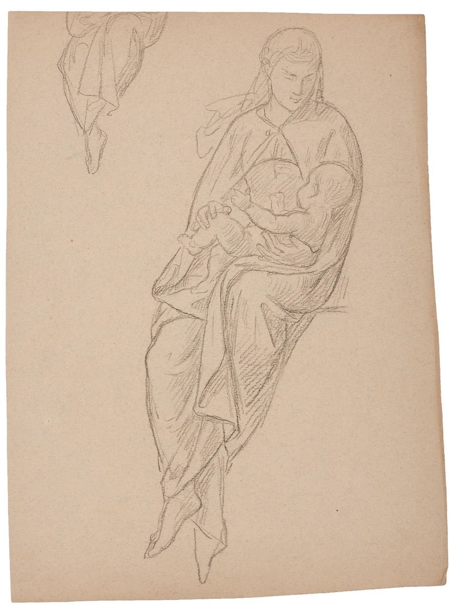 Woman with a Child - Original Drawing in Pencil - Early 20th Century Early 20th Century