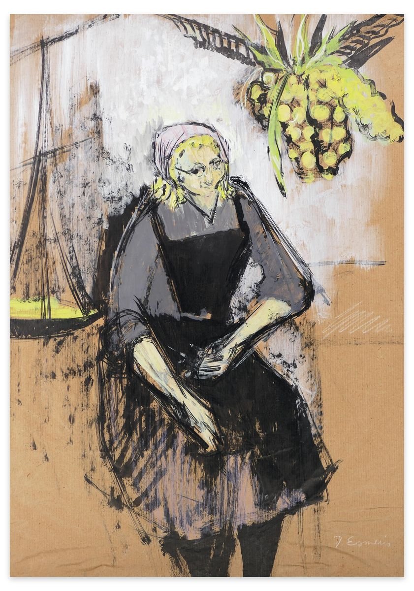 Woman With Pineapple - Original Gouache by Jeanne Esmein - 1970s 1970s