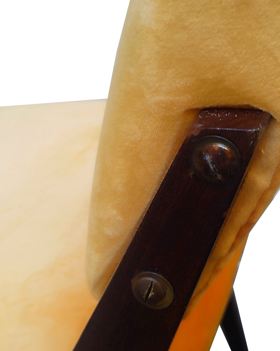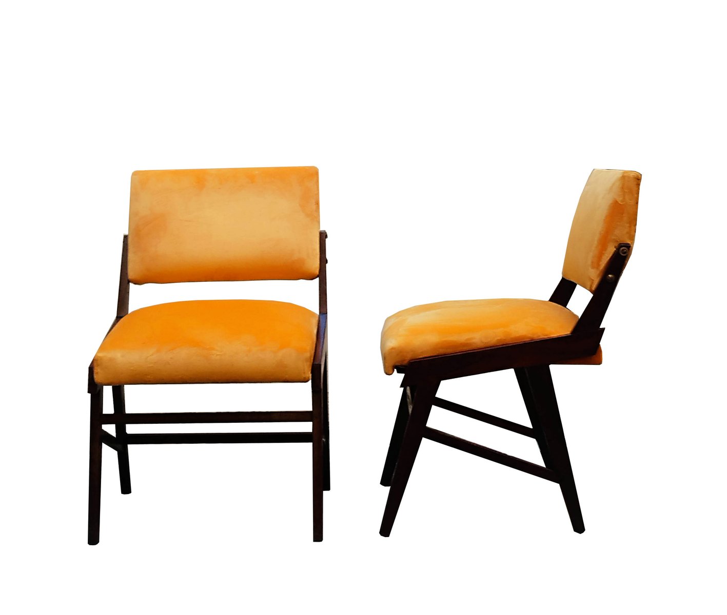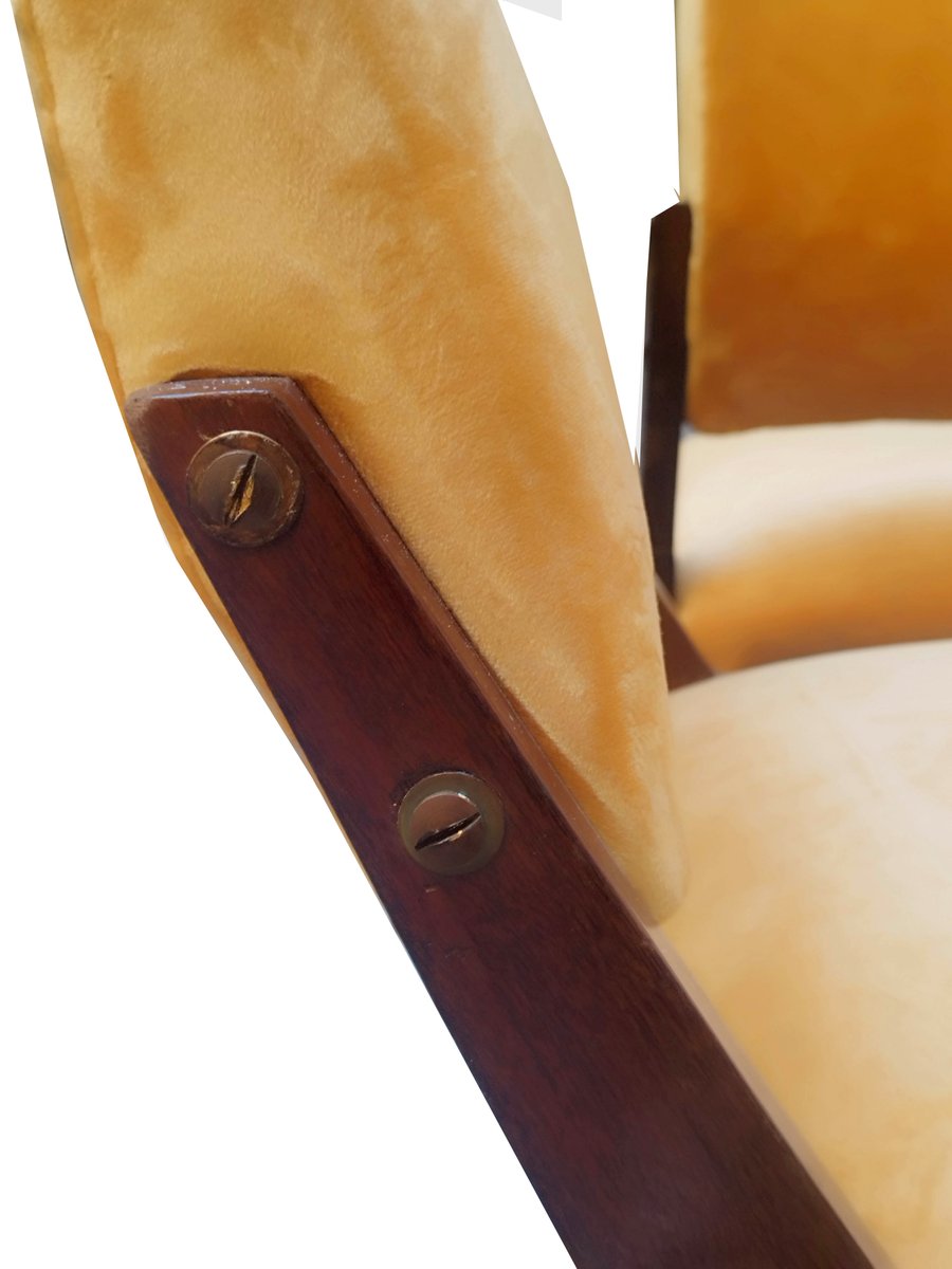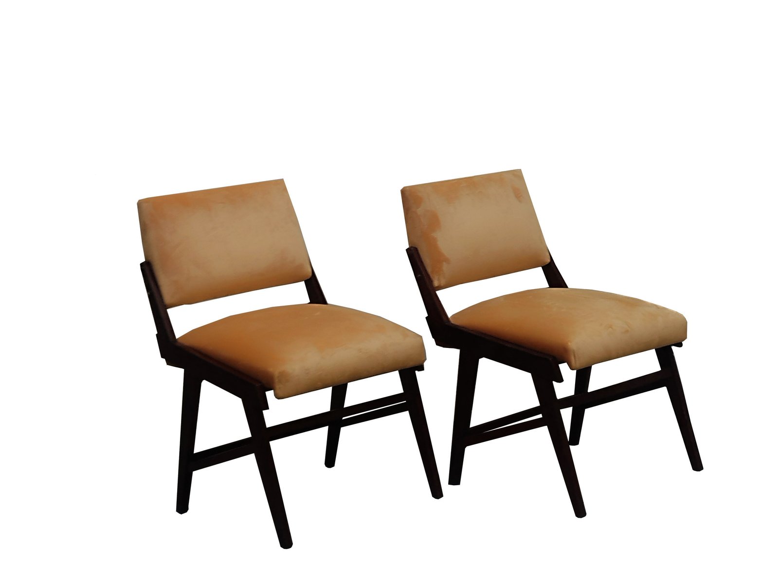 Wood and Velvet Chairs, Italy, 1960s, Set of 2