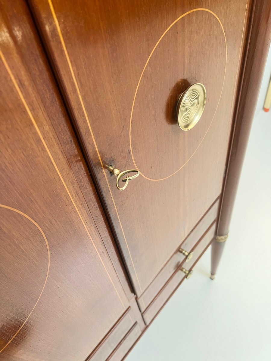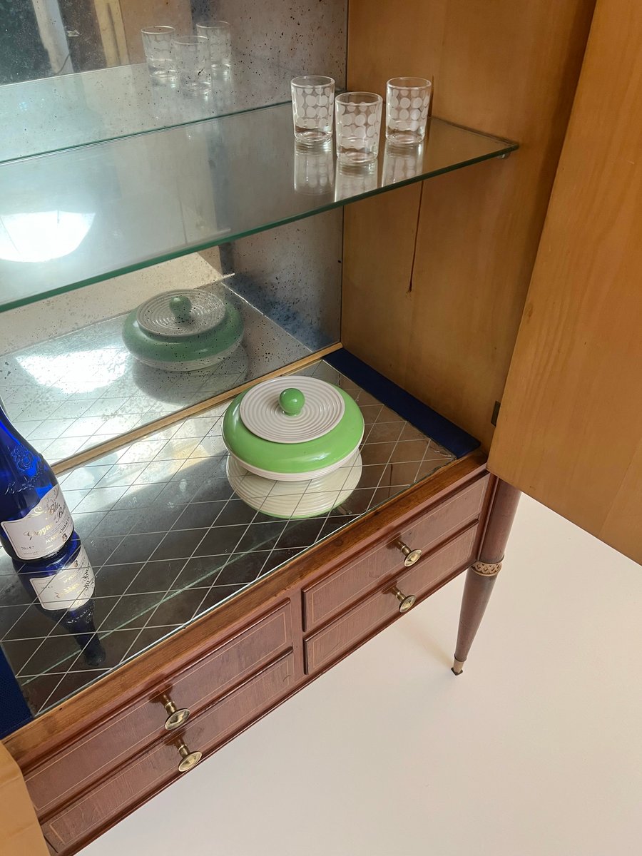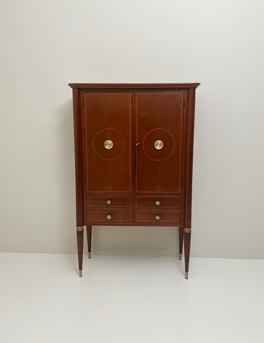 Wood & Brass Bar Cabinet, 1950s