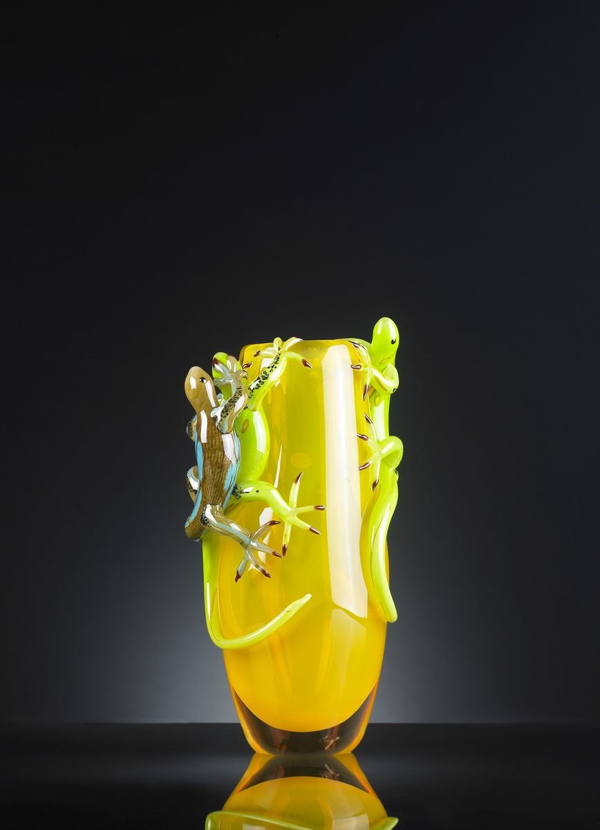 Yellow Big Glass Vase with 3 Geckos by VG Design and Laboratory Department